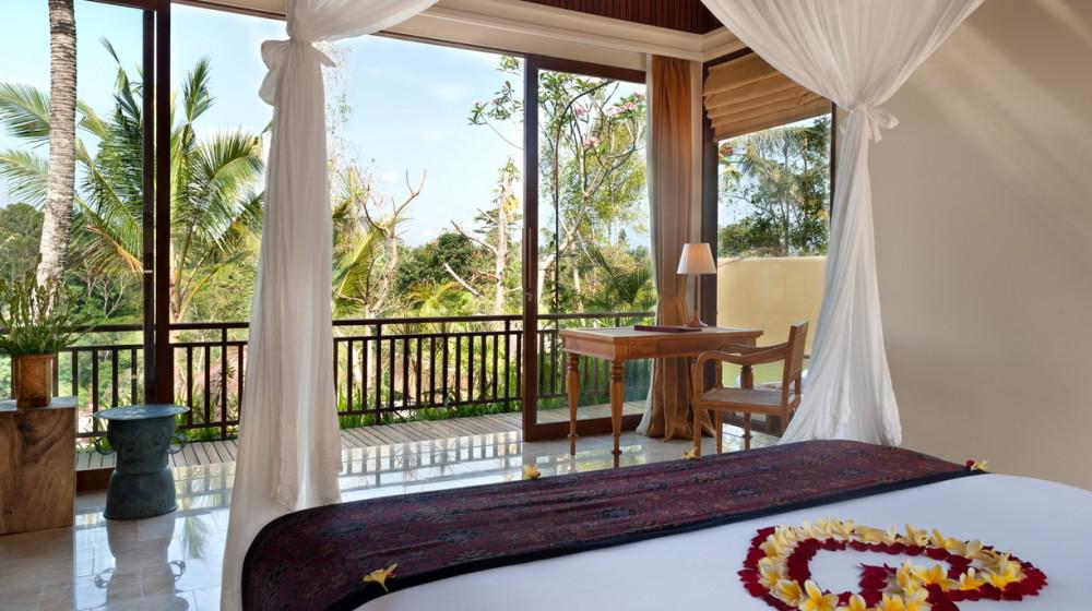 Komaneka at Tanggayuda Ubud è un resort di lusso 5 stelle che offre un'esperienza di immersione totale nella natura, situato su una collina con vista mozzafiato sulla valle del fiume Oos. Lontano dal trambusto del centro, è il luogo ideale per un ritiro spirituale e di lusso, celebre per le sue ville private e la pace assoluta.