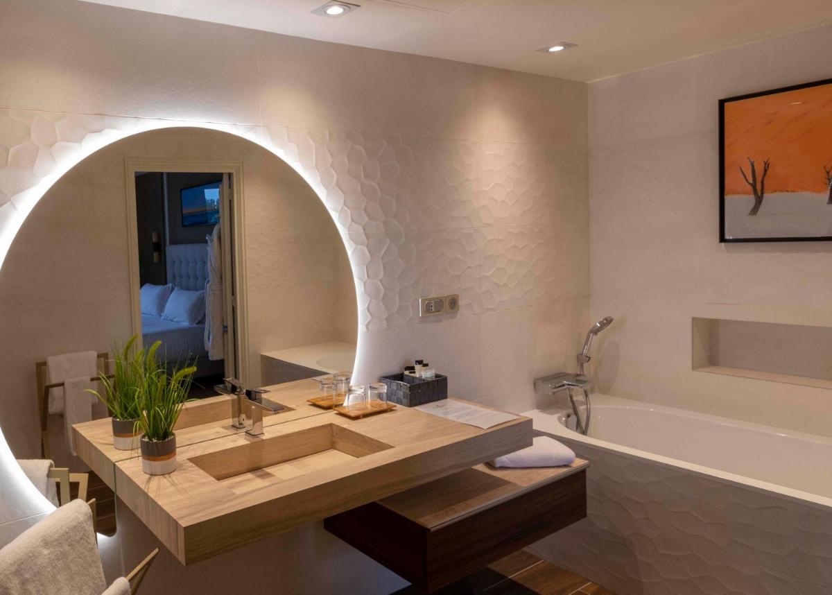 Le camere e le suite sono progettate per offrire il massimo comfort, con un design elegante e rilassante. Molte vantano una vista panoramica spettacolare sul fiume e sul paesaggio circostante. La presenza di spazi luminosi e materiali naturali crea un'atmosfera di quiete e benessere, ideale per staccare dalla routine.