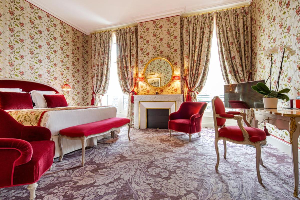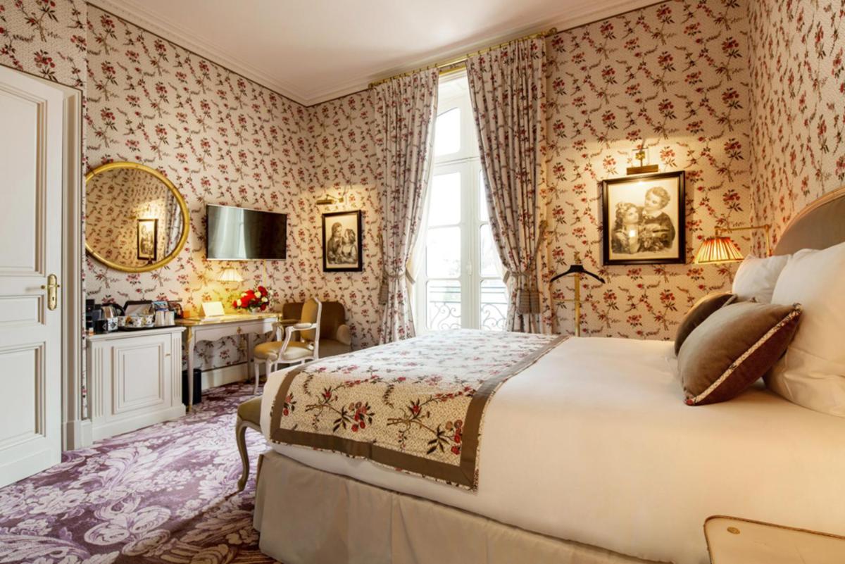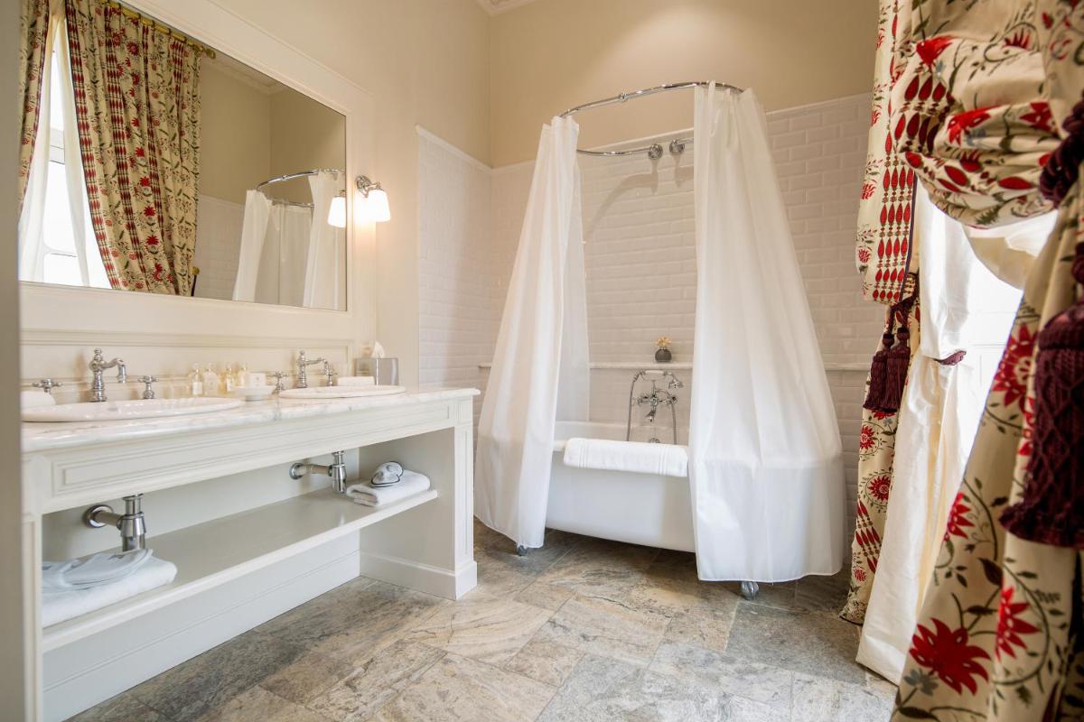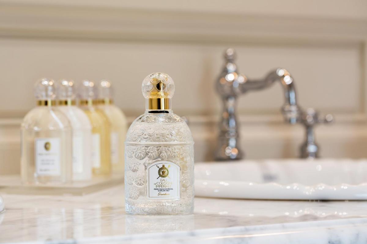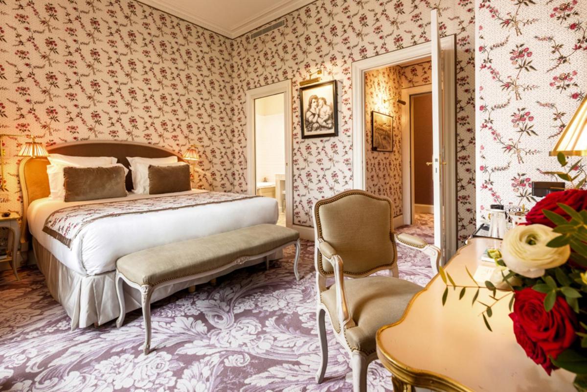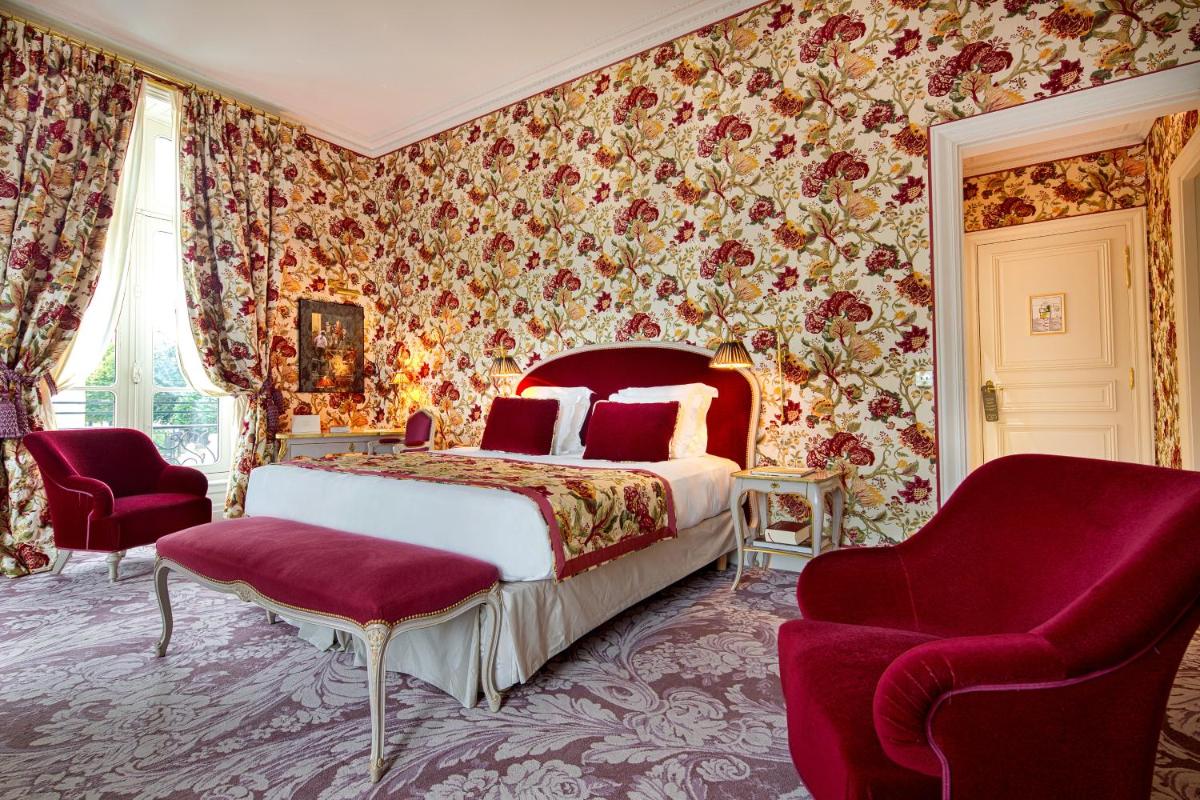 Le camere e le suite sono veri capolavori di design classico e lussuoso, decorate con tessuti preziosi, mobili antichi e opere d'arte. L'atmosfera è quella di una dimora nobiliare privata, dove ogni dettaglio è pensato per offrire il massimo comfort e una eleganza senza tempo. Molte suite offrono una vista spettacolare sul parco circostante.