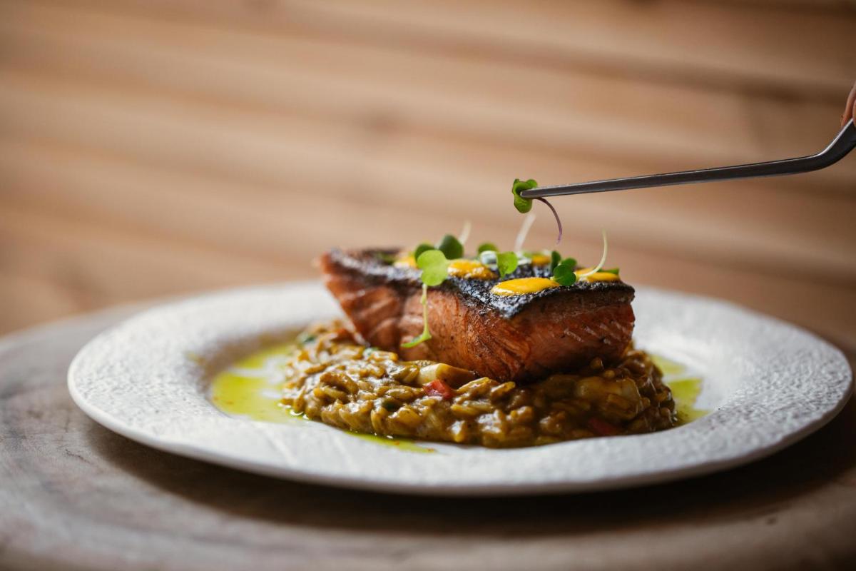 L'hotel vanta diverse opzioni culinarie che celebrano la cucina mediterranea e minorchina. Il ristorante principale si concentra su prodotti locali e di stagione (filosofia a Km 0). Gli ospiti possono anche cenare in ristoranti a tema con diverse specialità, tutti all'interno del complesso Lago Resort. Il servizio è attento e personalizzato, arricchito dalla possibilità di pasti all'aperto con vista sulla laguna.