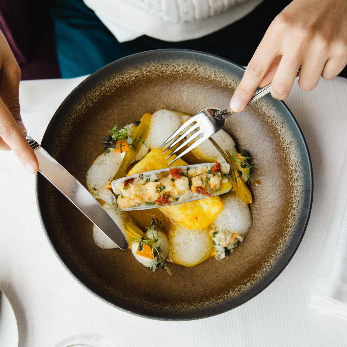 Il ristorante principale, con la sua veranda affacciata sull'oceano, propone una cucina gourmet che esalta i sapori della Normandia e i prodotti ittici freschi. L'hotel vanta anche un bar elegante, luogo perfetto per un cocktail serale, e sale storiche che ospitano eventi e serate di gala in un ambiente sontuoso.