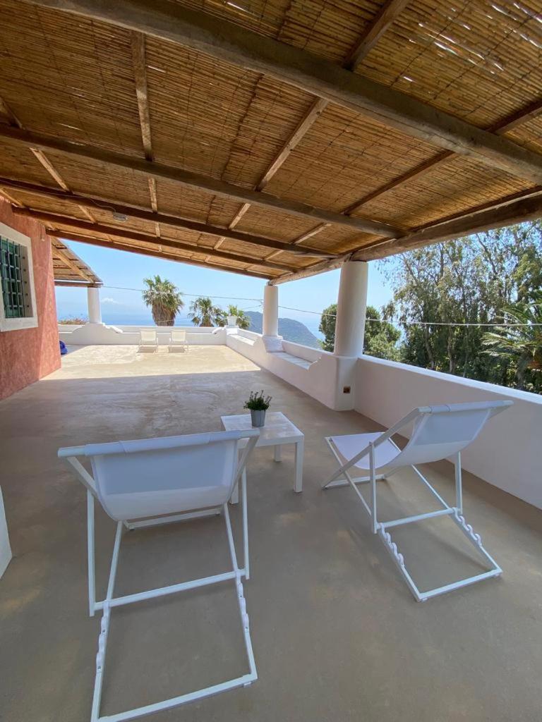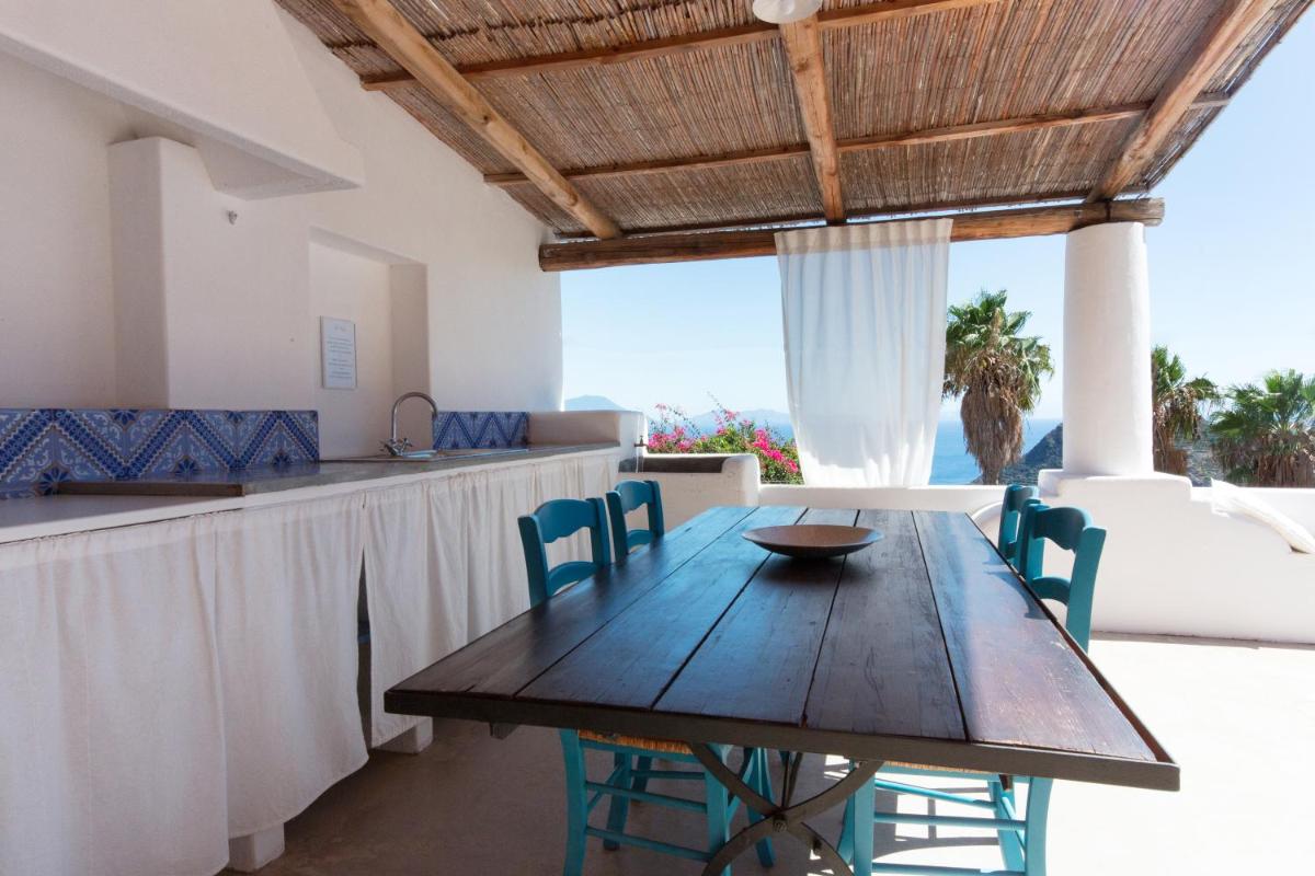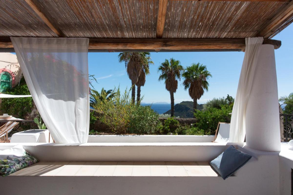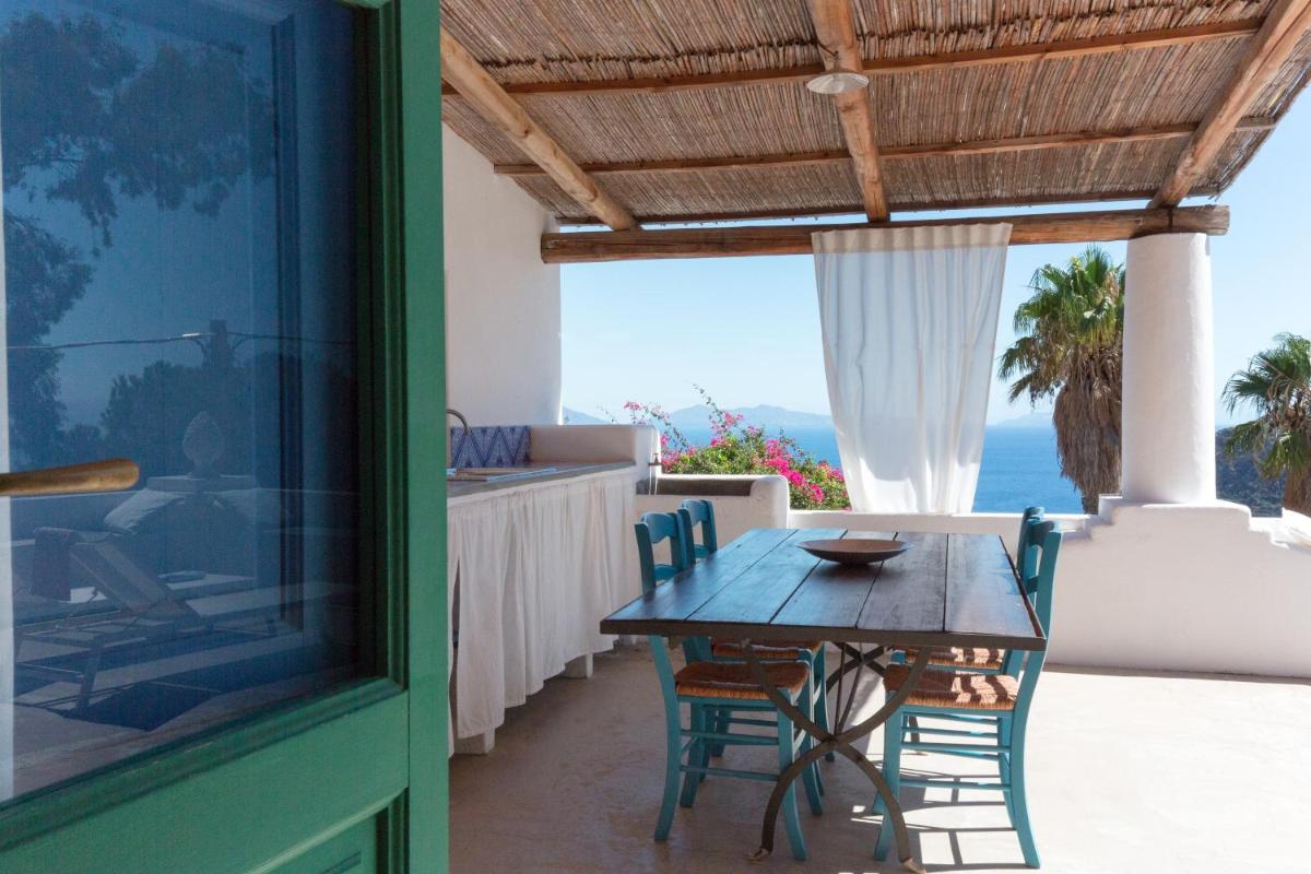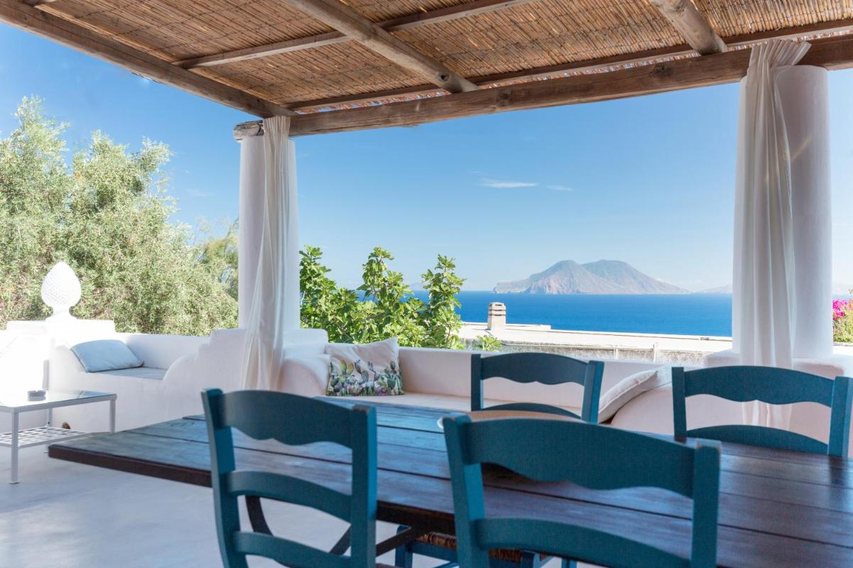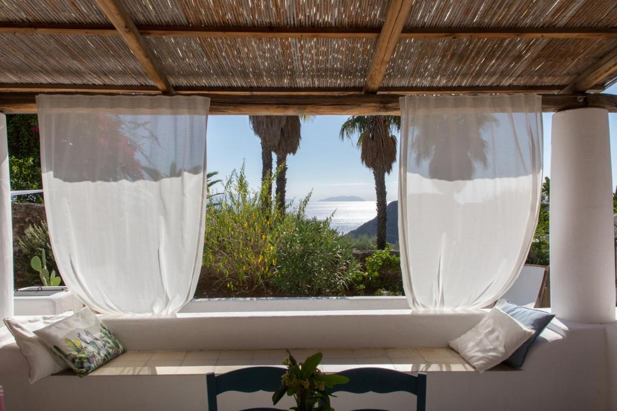 Un rigoglioso giardino e una terrazza comune invitano gli ospiti a godersi colazioni all’aperto, letture o momenti di contemplazione. La posizione elevata offre una vista mozzafiato su Filicudi Porto e l’orizzonte marino.