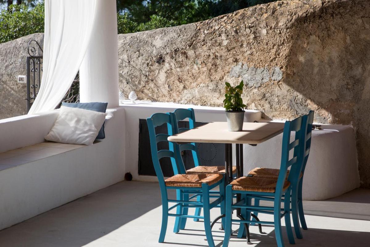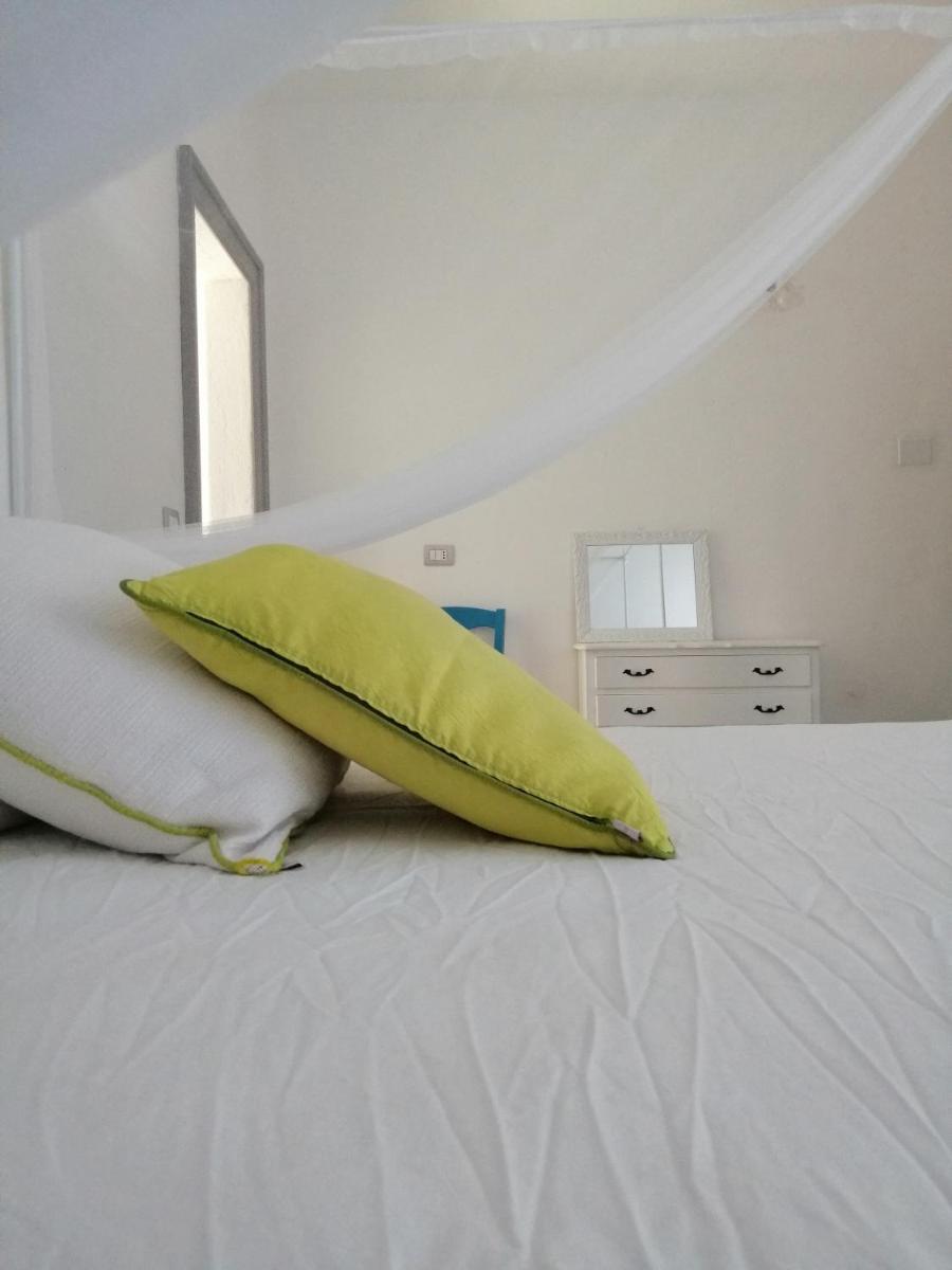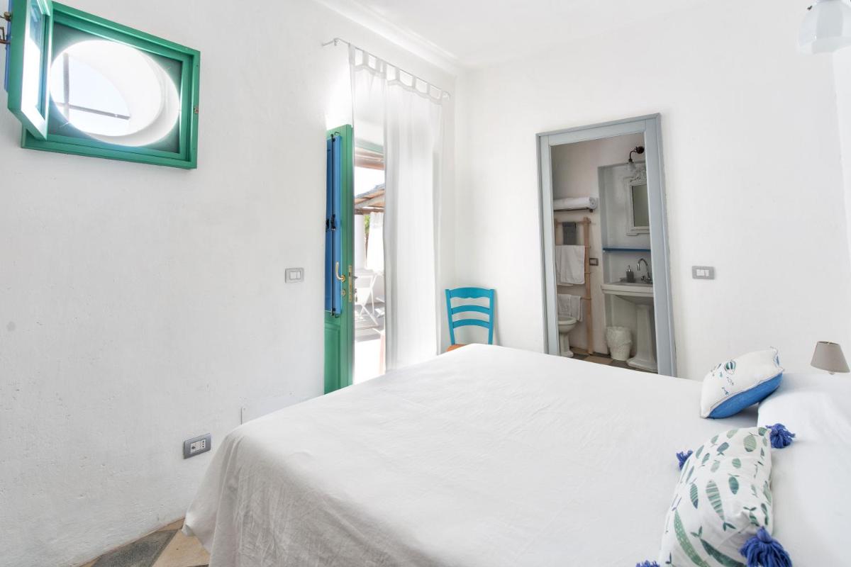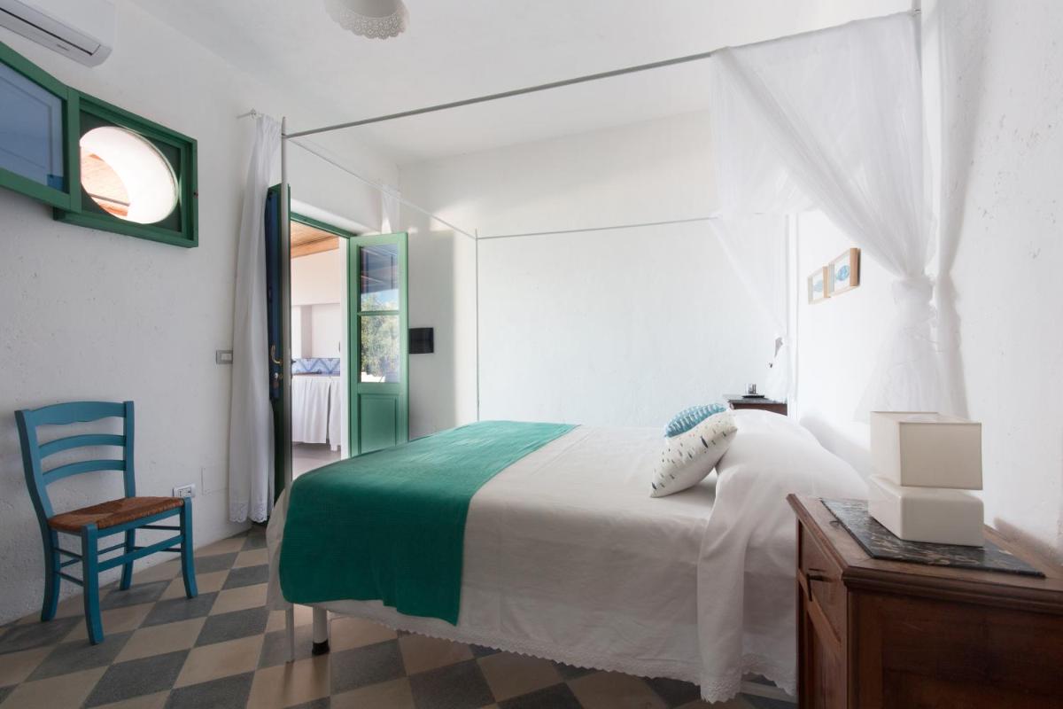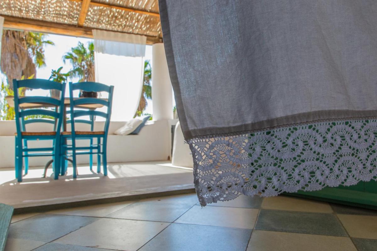 Il B&B dispone di 6 camere matrimoniali e familiari, arredate con semplicità ma cura, caratterizzate da muri bianchi, dettagli in pietra e tessuti locali. Ogni camera ha il bagno privato, aria condizionata, Wi‑Fi gratuito e terrazza o patio con vista sul giardino o sul mare.