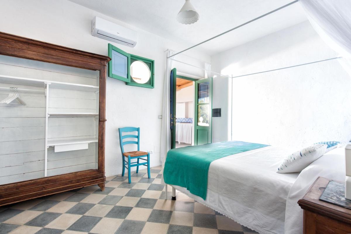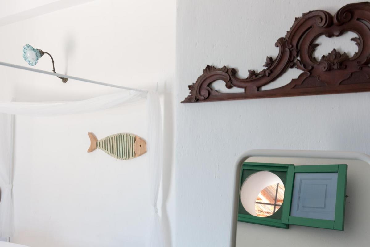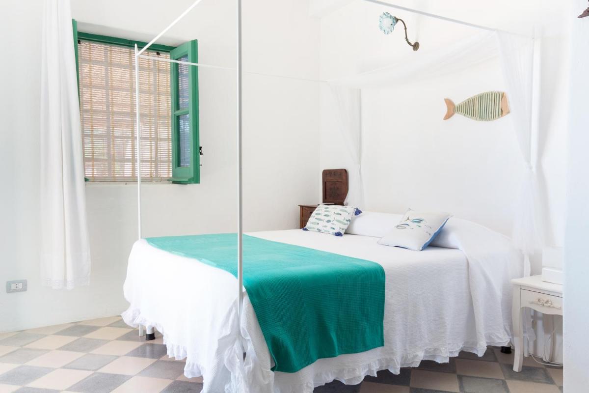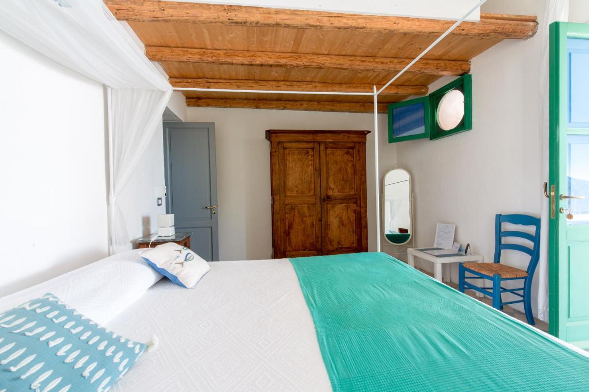 Il B&B dispone di 6 camere matrimoniali e familiari, arredate con semplicità ma cura, caratterizzate da muri bianchi, dettagli in pietra e tessuti locali. Ogni camera ha il bagno privato, aria condizionata, Wi‑Fi gratuito e terrazza o patio con vista sul giardino o sul mare.
