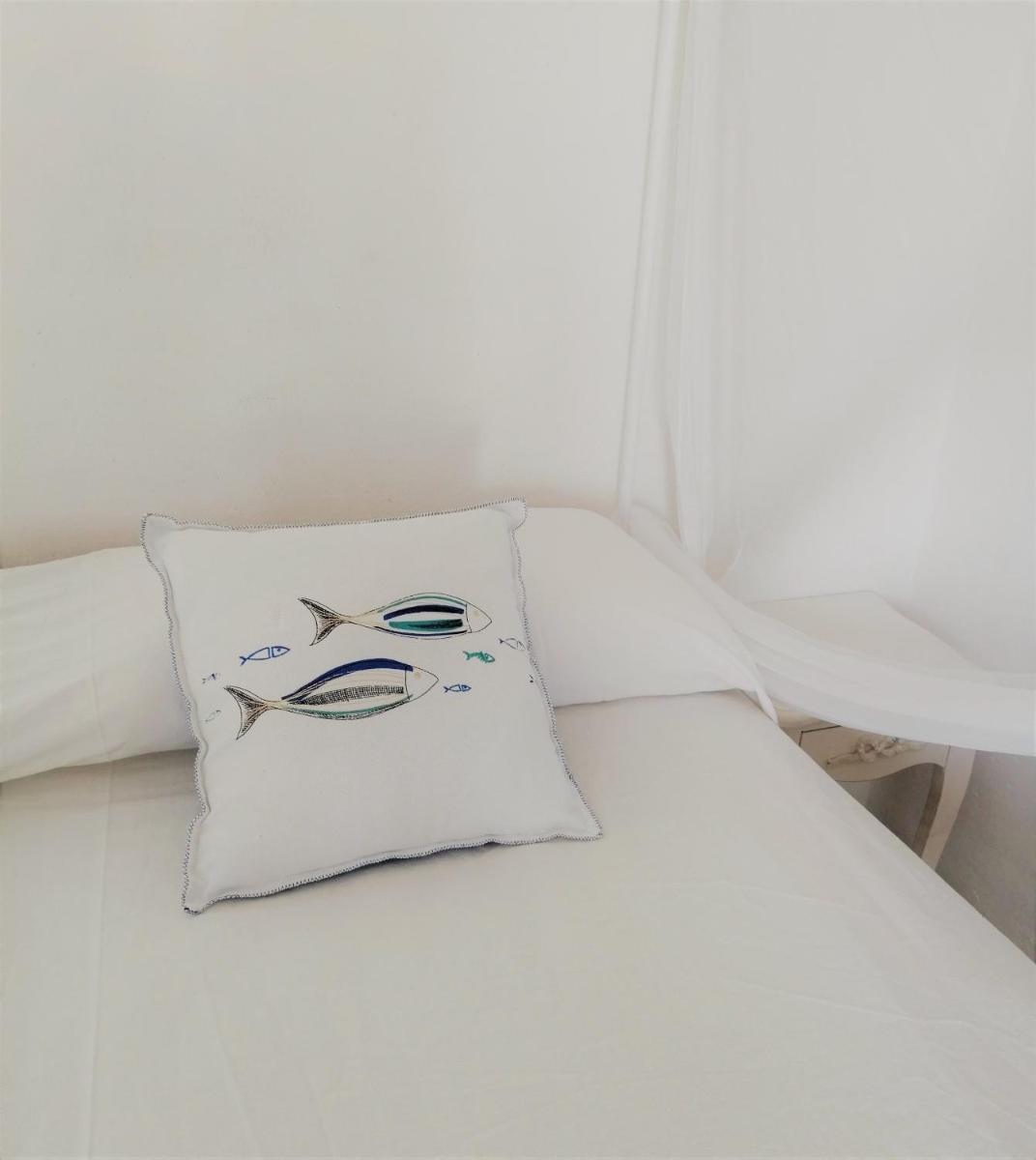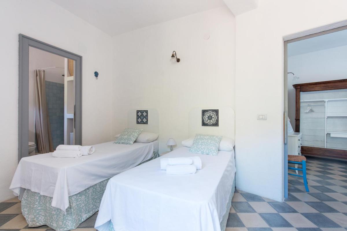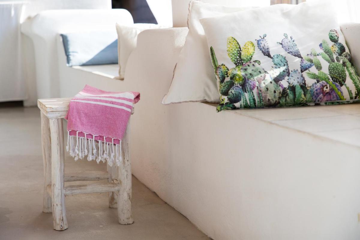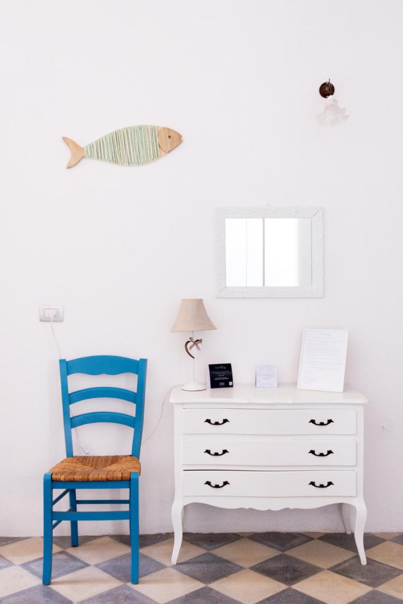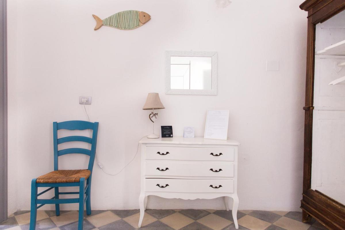 Il B&B dispone di 6 camere matrimoniali e familiari, arredate con semplicità ma cura, caratterizzate da muri bianchi, dettagli in pietra e tessuti locali. Ogni camera ha il bagno privato, aria condizionata, Wi‑Fi gratuito e terrazza o patio con vista sul giardino o sul mare.