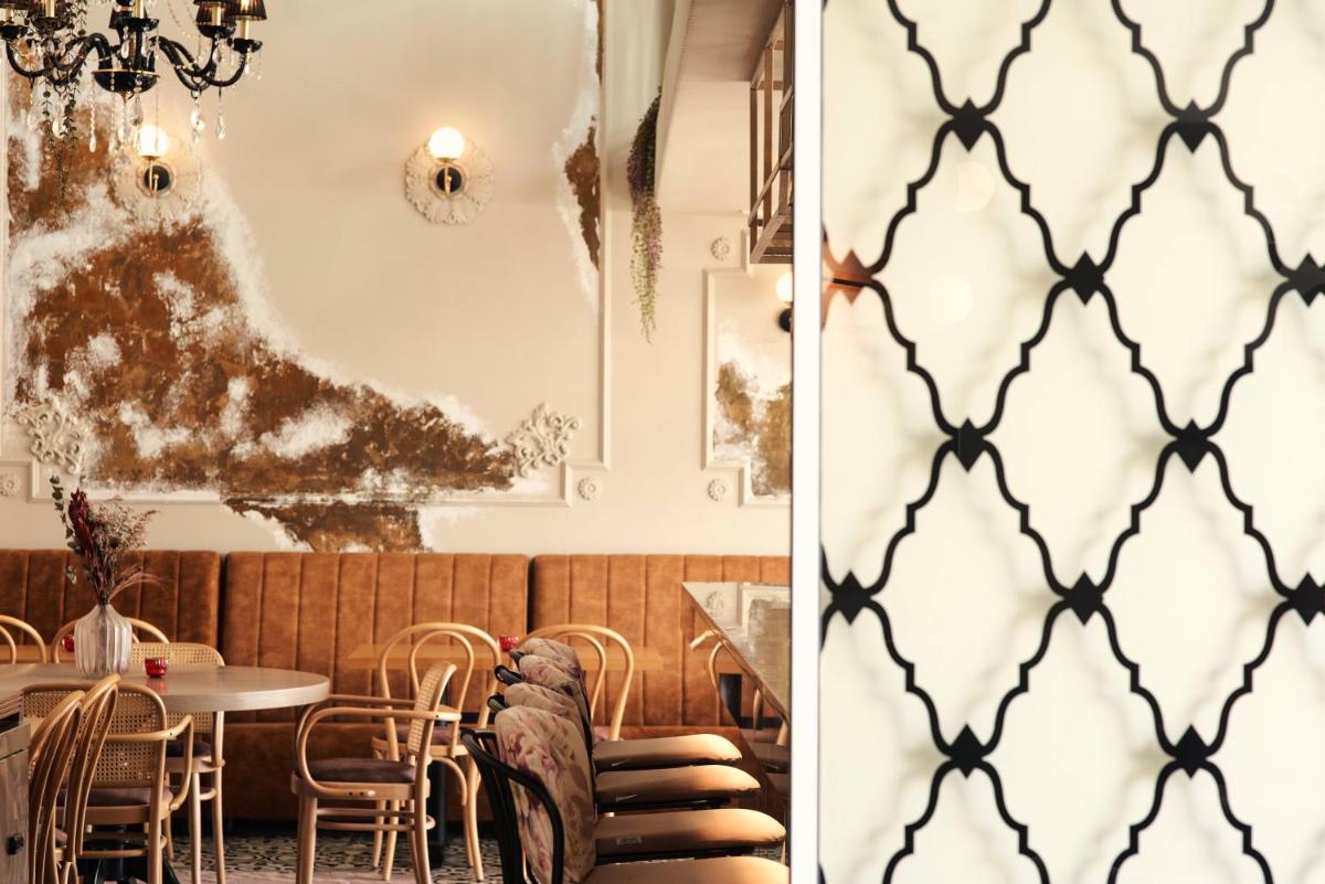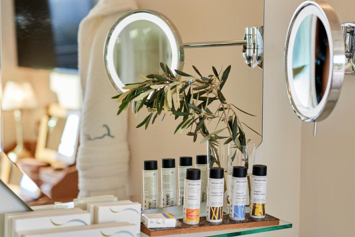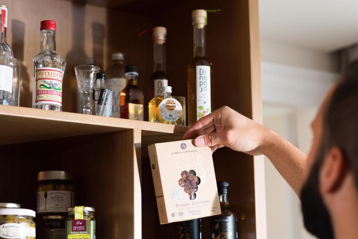 Ogni suite è stata progettata individualmente, ispirandosi a un elemento chiave della tradizione gastronomica greca. Gli interni sono sofisticati, con arredi di alta gamma, bagni di lusso e servizi smart. L'attenzione ai dettagli crea un ambiente di lusso contemporaneo e comfort ineguagliabile nel cuore della città.