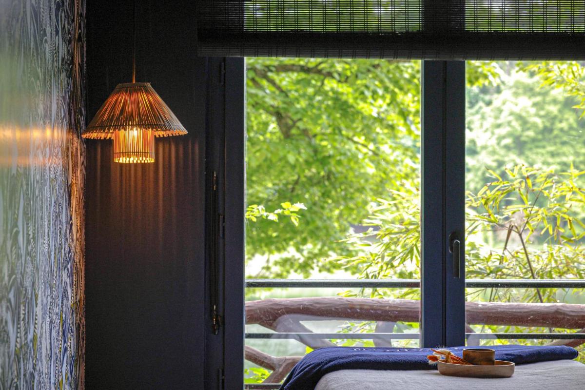Le camere e le suite sono elegantemente arredate, spesso in stile classico o ispirate alla natura circostante. Molte offrono una vista incantevole sugli stagni ('étangs') che hanno ispirato i maestri. L'atmosfera è quella di una casa di campagna di lusso, dove il comfort e la serenità sono garantiti, creando un ambiente ideale per la meditazione e il riposo.