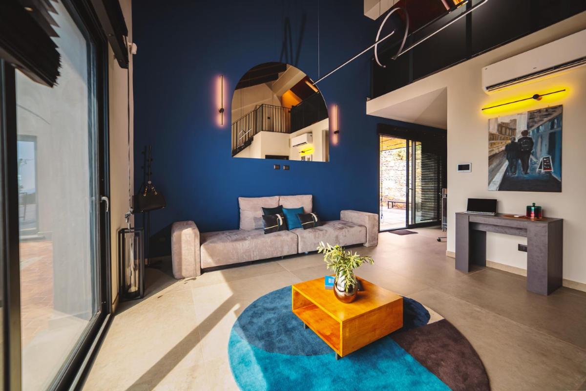 La struttura è un'antica masseria o 'baglio' sapientemente restaurata, che mantiene il suo carattere storico con muri in pietra lavica, travi in legno a vista e pavimenti in cotto. Il design interno combina elementi rustici con un'eleganza sobria e moderna, creando un ambiente accogliente e profondamente legato al territorio.