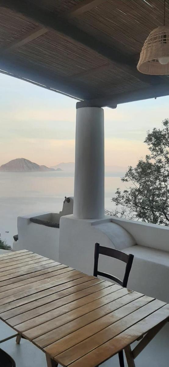 La struttura rispecchia fedelmente lo stile delle case eoliane, con le tipiche terrazze coperte (pulere) e le pareti bianche che contrastano con il blu del mare. Gli interni sono arredati con gusto, combinando elementi della tradizione locale con un tocco di eleganza contemporanea, creando ambienti freschi, luminosi e altamente rilassanti.