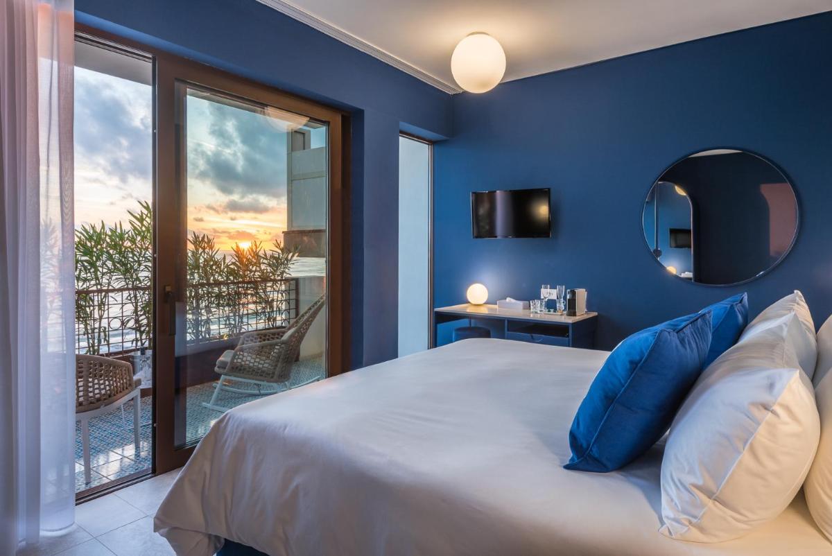 Ambientazioni chiare con tocchi di design contemporaneo; alcune camere con balconi o terrazze fronte mare.