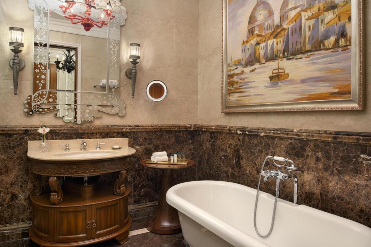Dotata di un ampio balcone o di una terrazza con vista sulla Perla del Qatar, questa lussuosa suite propone composizioni floreali ed è completa di connessione WiFi gratuita e di soggiorno separato con 2 TV a schermo piatto. Il bagno comprende di una TV a parete, una grande vasca e una doccia con getto a pioggia.