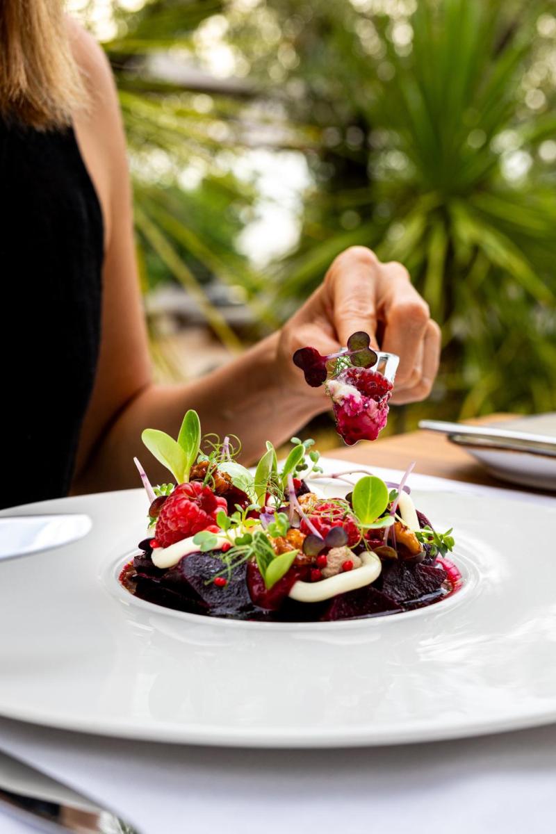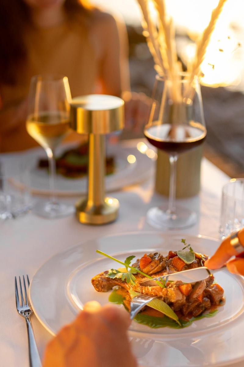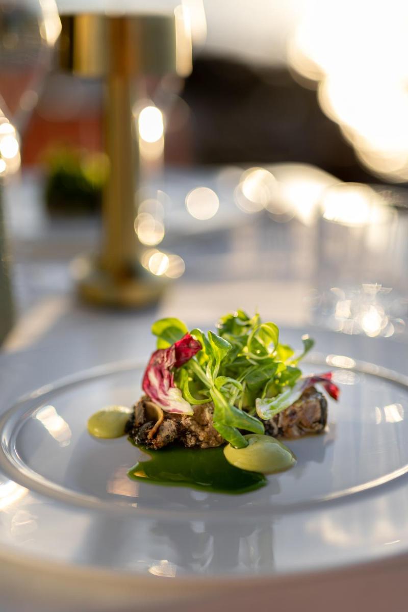 La proposta culinaria del Maslina è incentrata sulla filosofia 'Farm-to-Table' (dalla fattoria alla tavola), utilizzando prodotti freschi del giardino biologico del resort e pesce locale pescato in giornata. Il ristorante e il bar celebrano i sapori mediterranei e dalmati, con un'attenzione particolare alla semplicità e alla purezza degli ingredienti. È un viaggio gastronomico che esalta la tradizione e la sostenibilità.