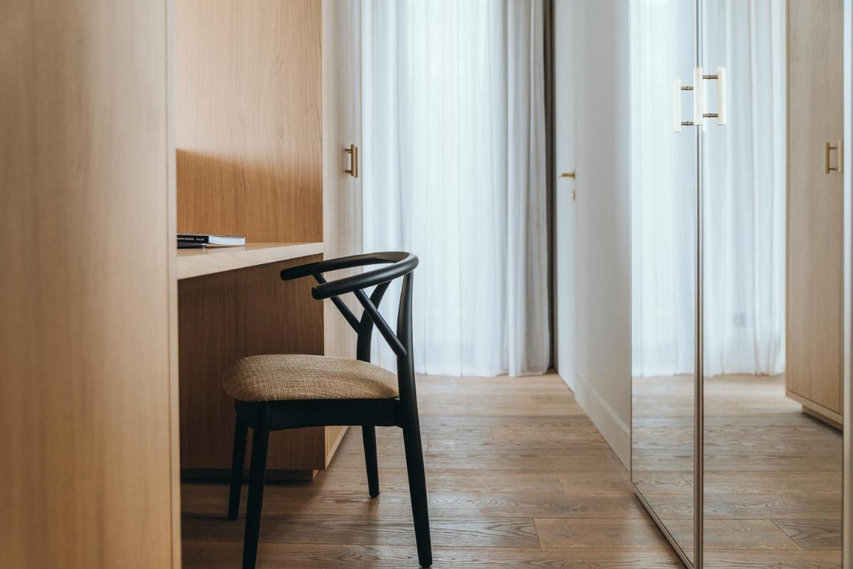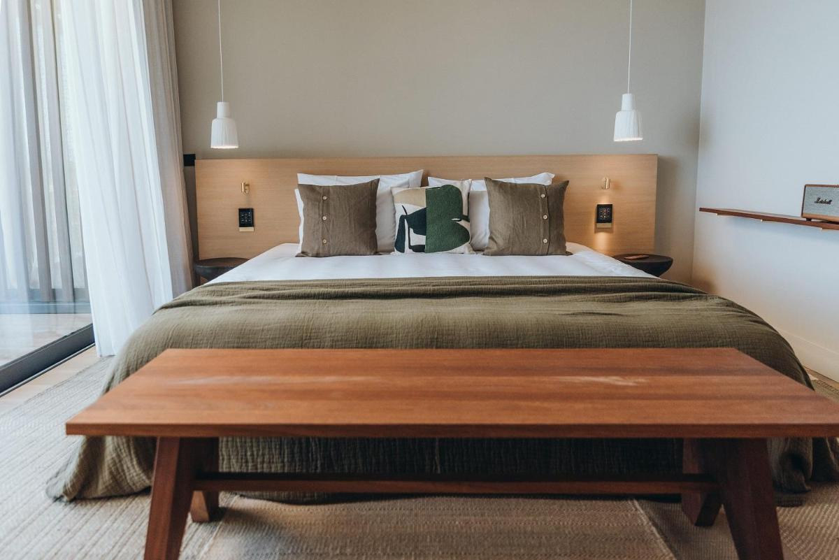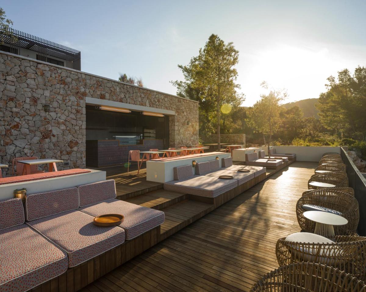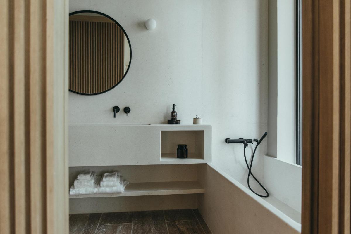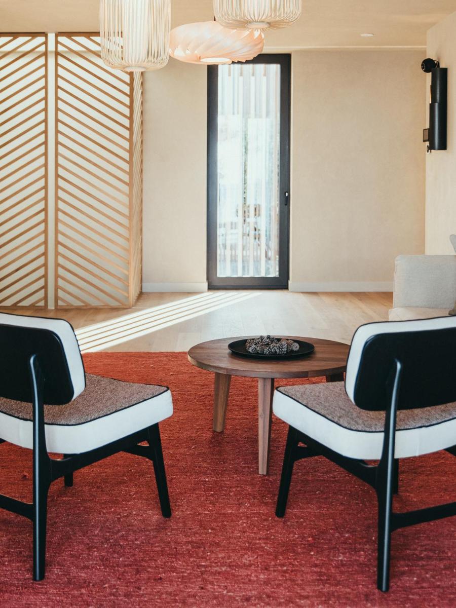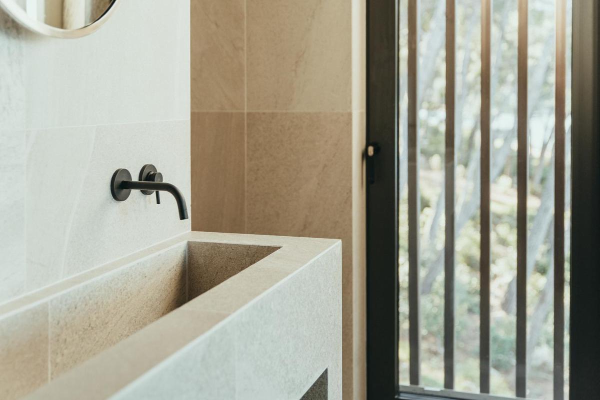Il design è un capolavoro di architettura integrata, con camere, suite e ville che offrono tutte terrazze private con vista mare e lussuosi comfort. L'uso di pietra locale, legno di quercia e tonalità terrose crea un'atmosfera di calma e connessione con l'ambiente. Ogni dettaglio è curato per massimizzare la privacy e il relax, con un focus sul lusso discreto e l'estetica minimalista.