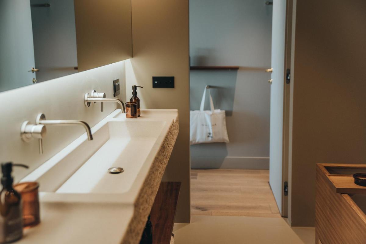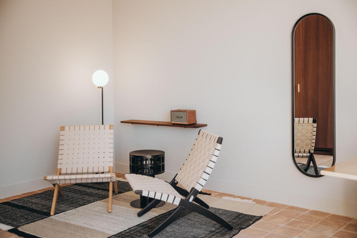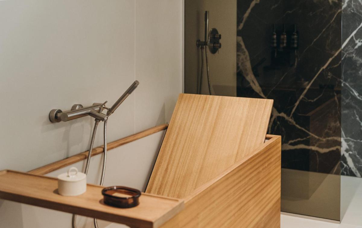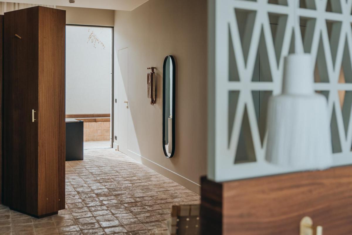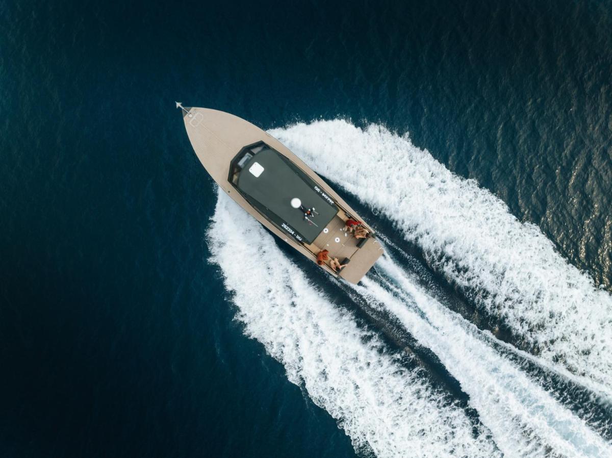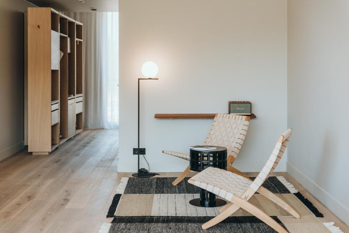 Il design è un capolavoro di architettura integrata, con camere, suite e ville che offrono tutte terrazze private con vista mare e lussuosi comfort. L'uso di pietra locale, legno di quercia e tonalità terrose crea un'atmosfera di calma e connessione con l'ambiente. Ogni dettaglio è curato per massimizzare la privacy e il relax, con un focus sul lusso discreto e l'estetica minimalista.