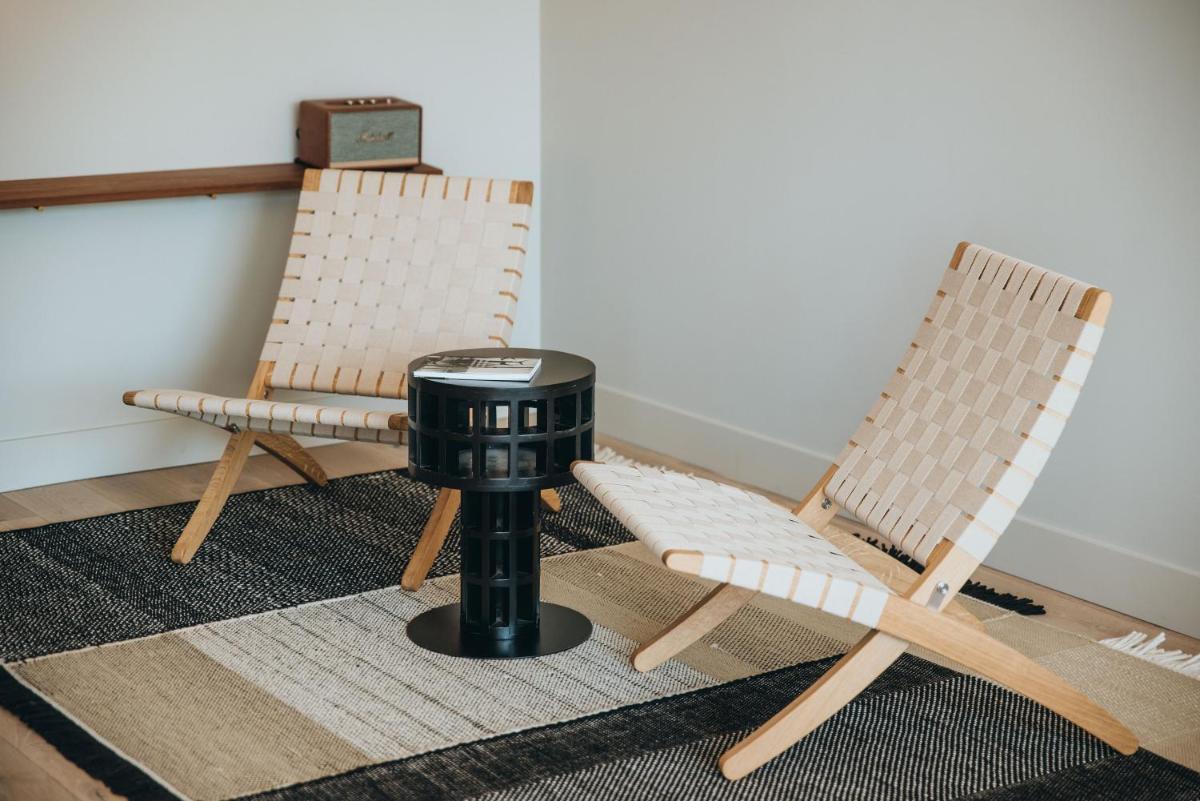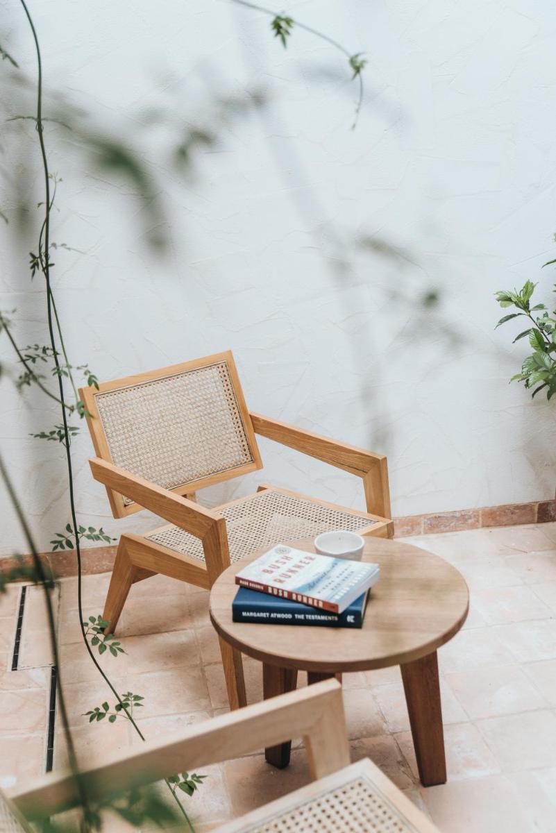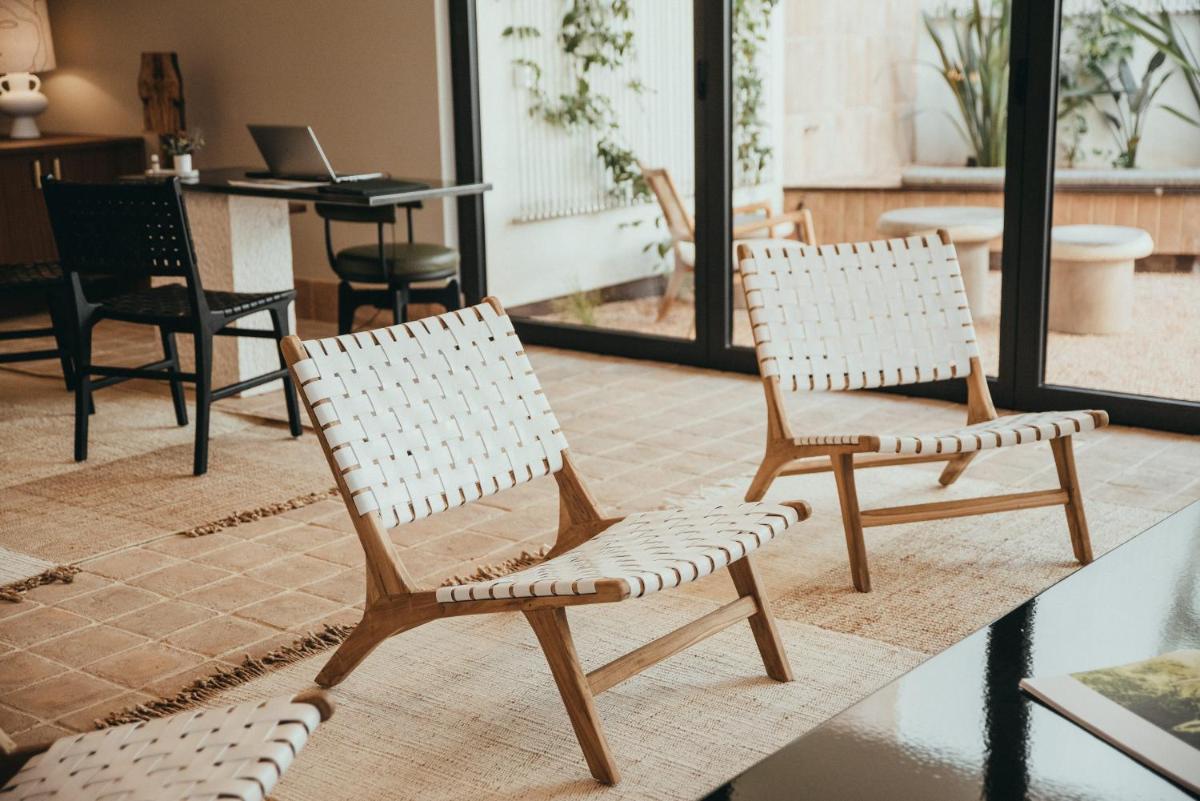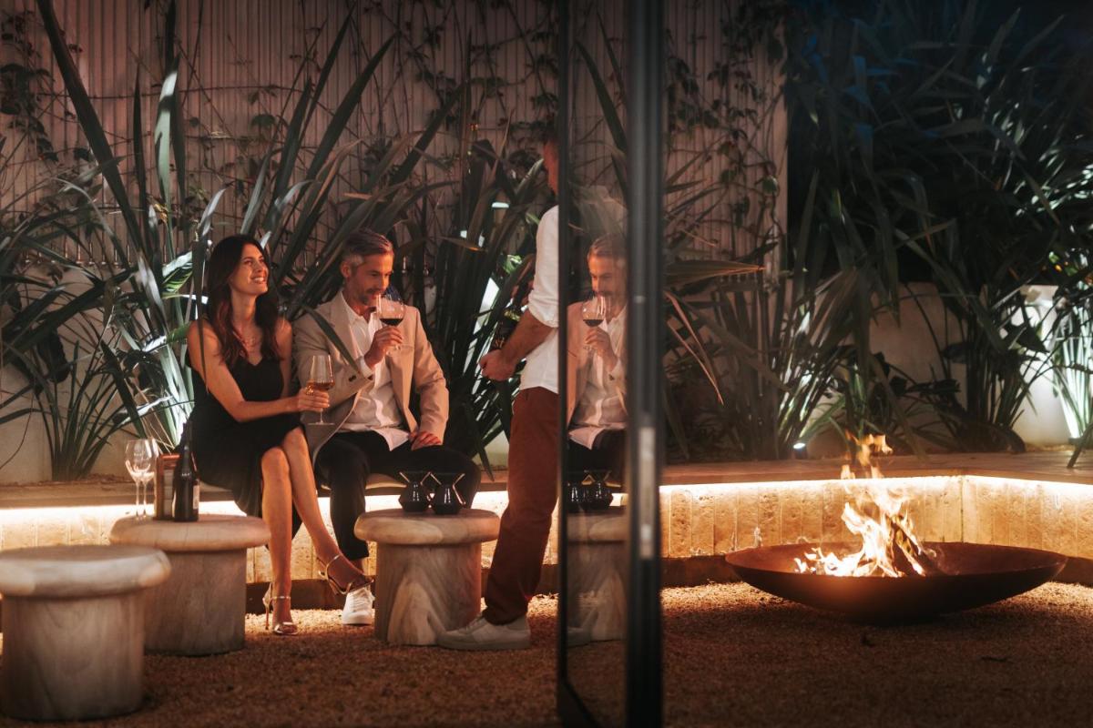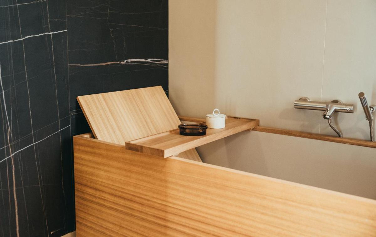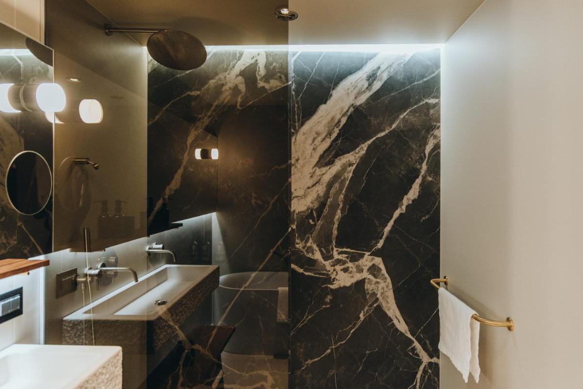 Il design è un capolavoro di architettura integrata, con camere, suite e ville che offrono tutte terrazze private con vista mare e lussuosi comfort. L'uso di pietra locale, legno di quercia e tonalità terrose crea un'atmosfera di calma e connessione con l'ambiente. Ogni dettaglio è curato per massimizzare la privacy e il relax, con un focus sul lusso discreto e l'estetica minimalista.