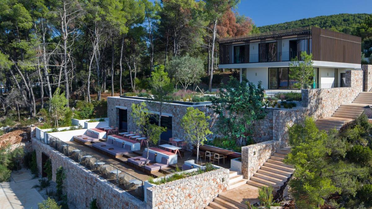Maslina Resort è un'oasi di lusso sostenibile e benessere situata nella pittoresca baia di Maslinica, vicino a Stari Grad, sull'incantevole Isola di Lesina (Hvar), in Croazia. Questo resort si distingue per la sua architettura che si fonde con la natura circostante, utilizzando materiali locali e celebrando la filosofia 'Mindful Luxury'. Offre un'esperienza di soggiorno che unisce l'esclusività di un boutique hotel con la profonda tranquillità e la bellezza incontaminata della costa dalmata.