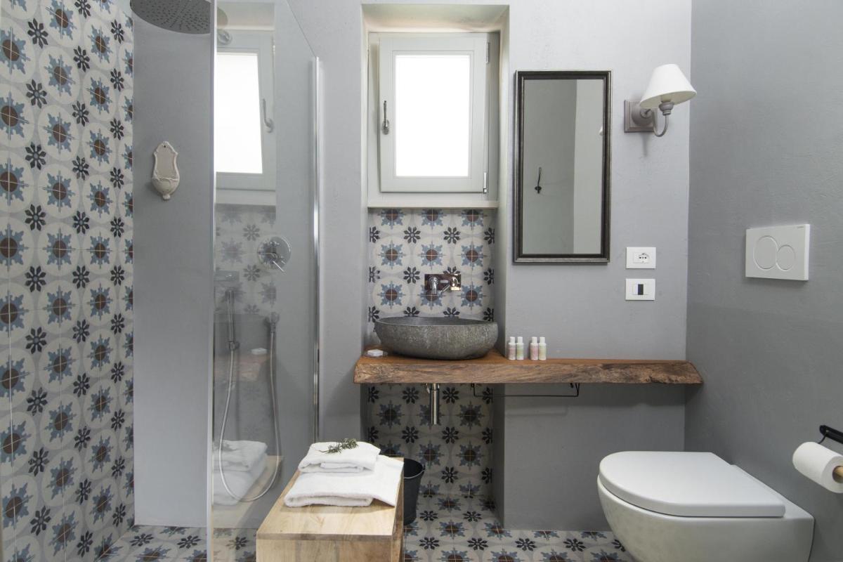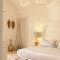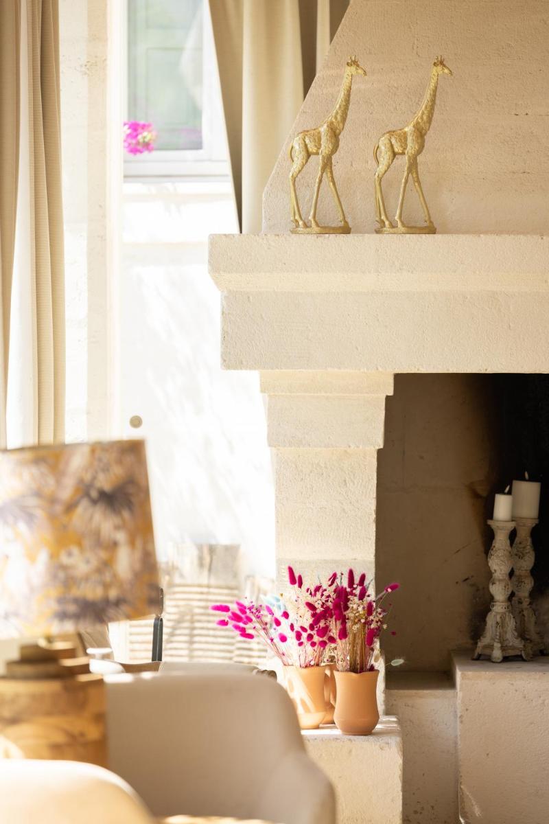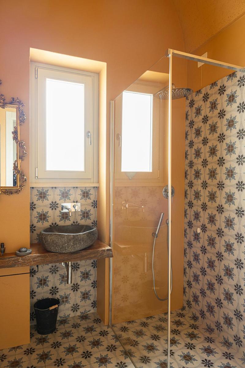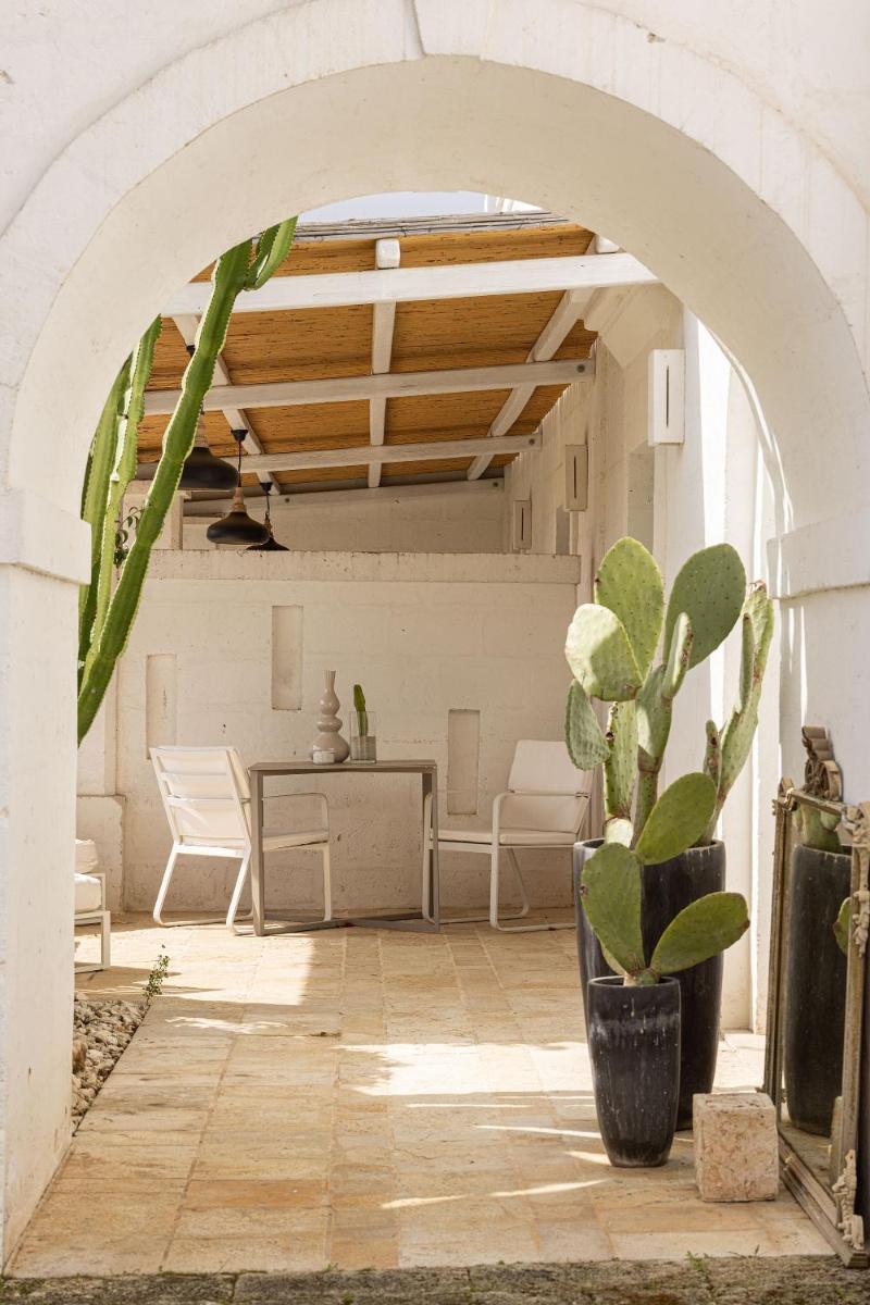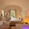 Le camere e le suite, ricavate dalle antiche strutture della masseria, mantengono il fascino rustico originale con volte in pietra, pavimenti in chianca e arredi che combinano mobili d'epoca con elementi moderni. Tutte le sistemazioni sono dotate di aria condizionata, minibar, TV satellitare e un bagno privato ben curato. Le suite più ampie includono una zona giorno separata, garantendo un soggiorno di massima privacy.