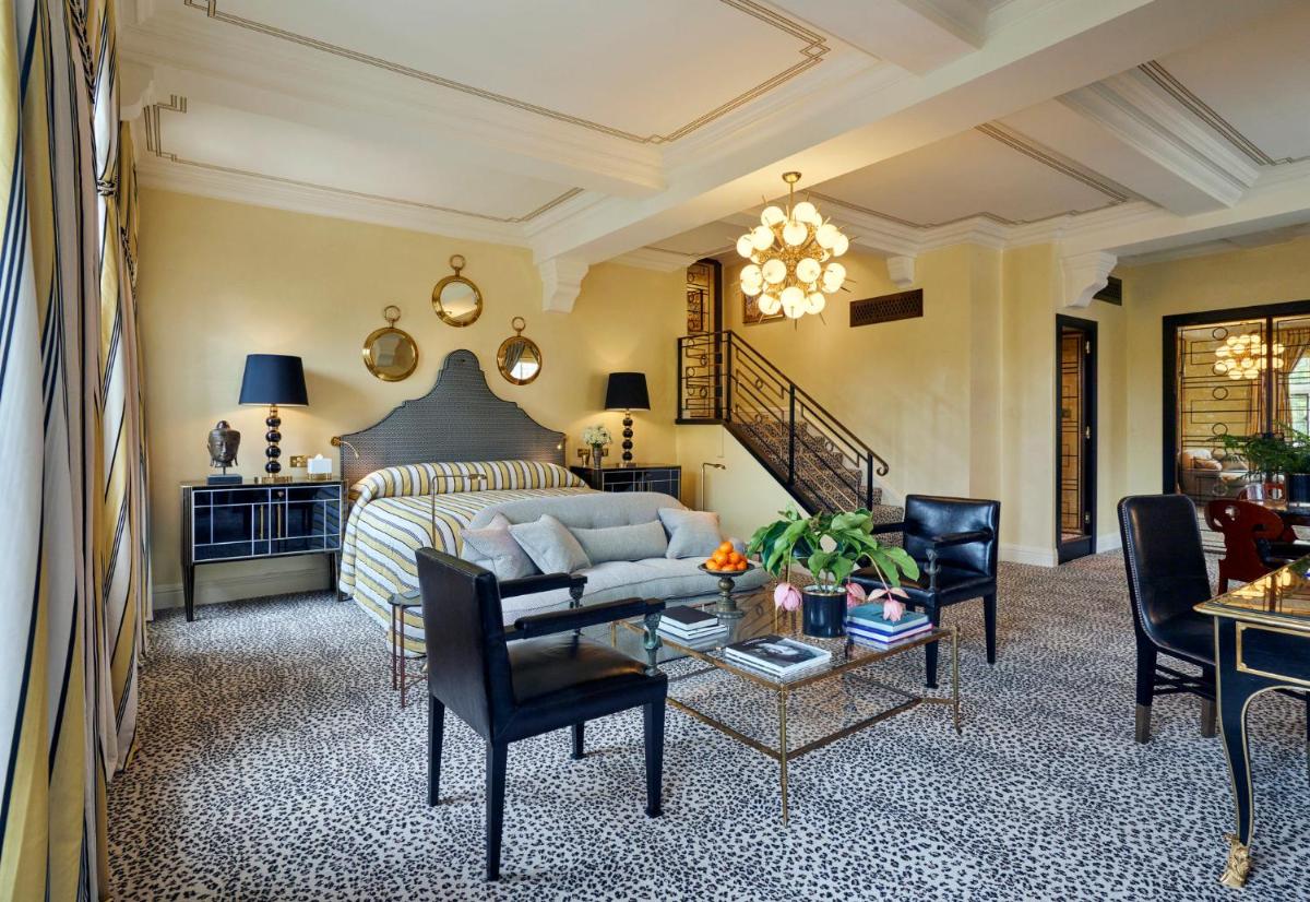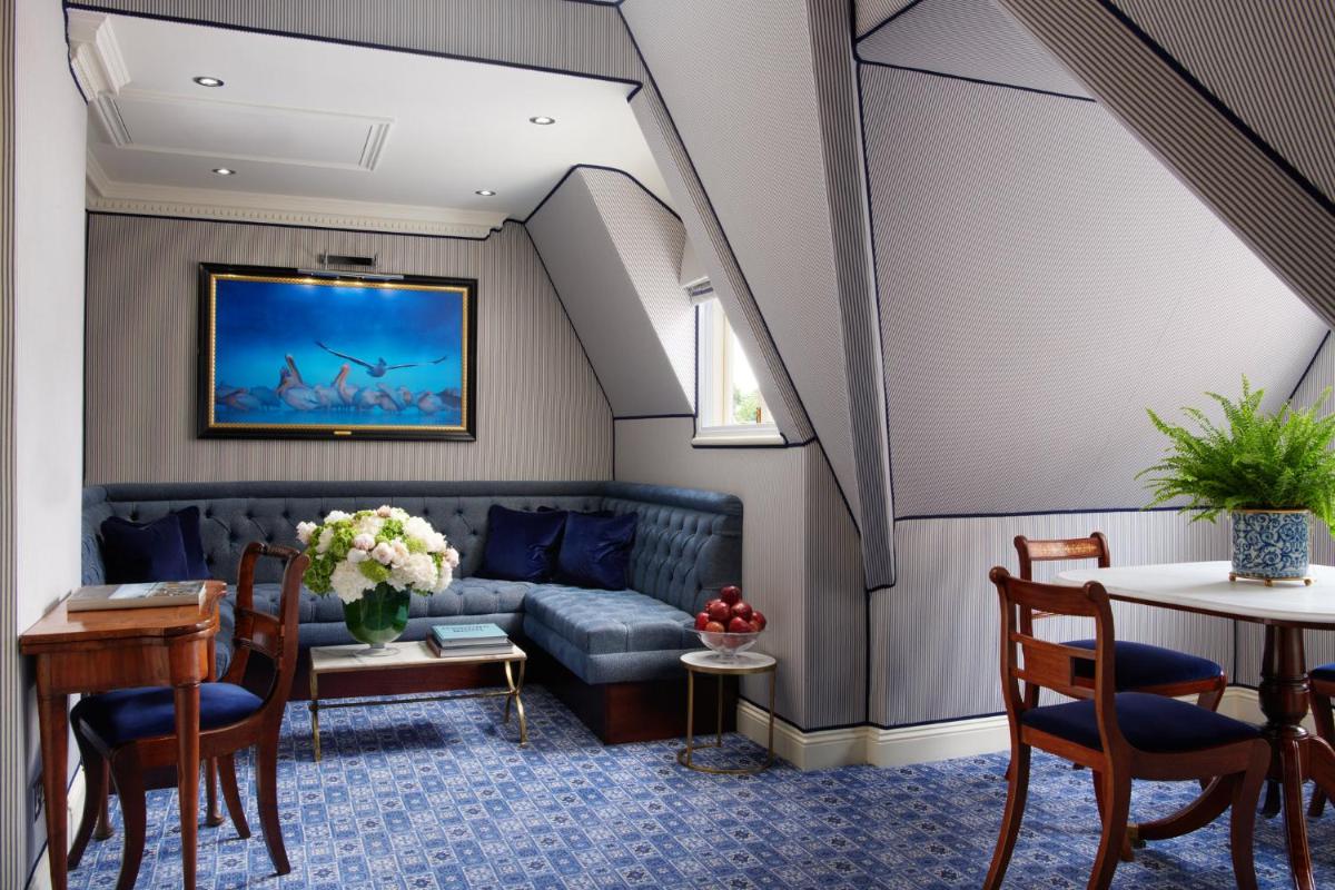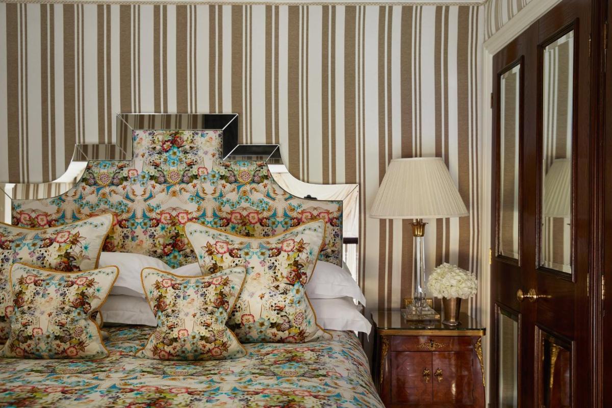 L'hotel vanta interni sontuosi, con decorazioni ricche, tappeti pregiati, caminetti accesi e una collezione d'arte unica. Le 44 camere e le 12 suite sono state progettate individualmente con uno stile lussuoso e un carattere distintivo, offrendo una vista privilegiata sui giardini o sulla tranquilla strada alberata.