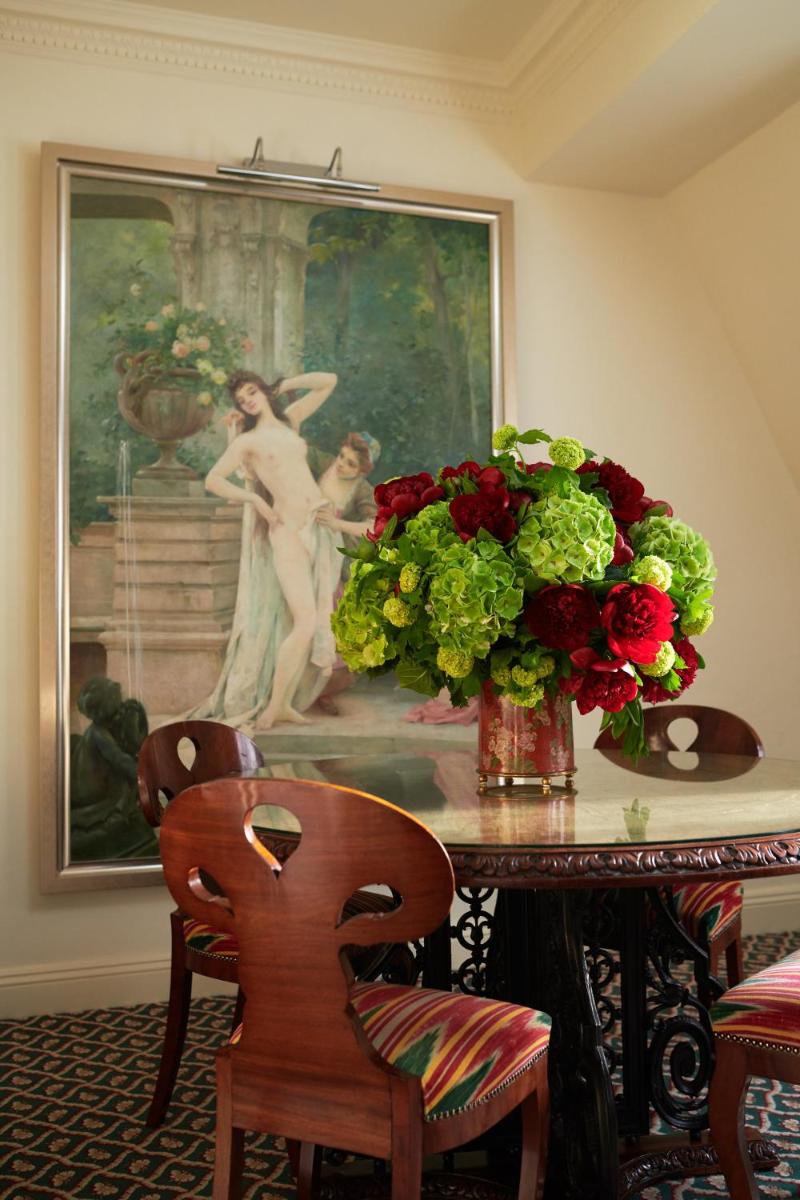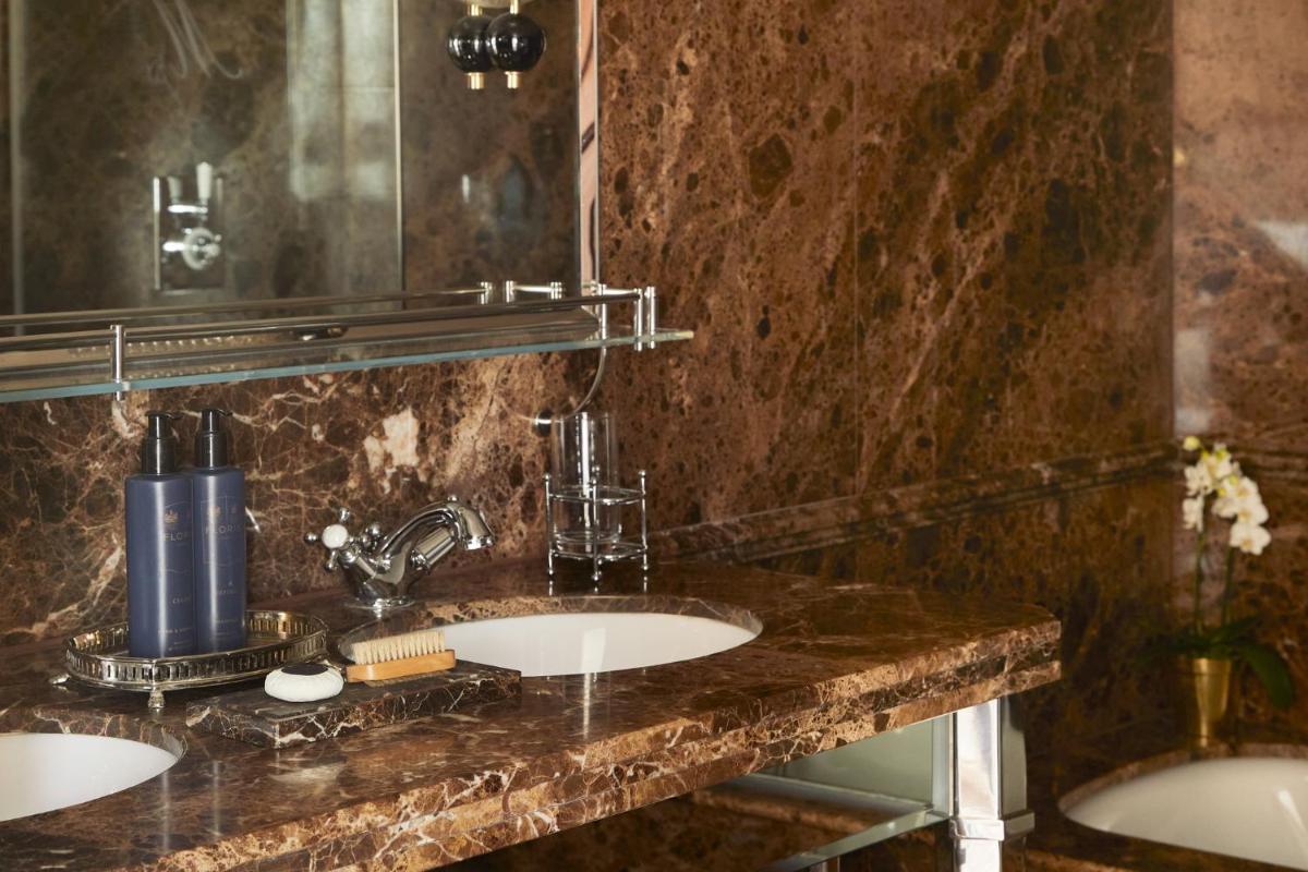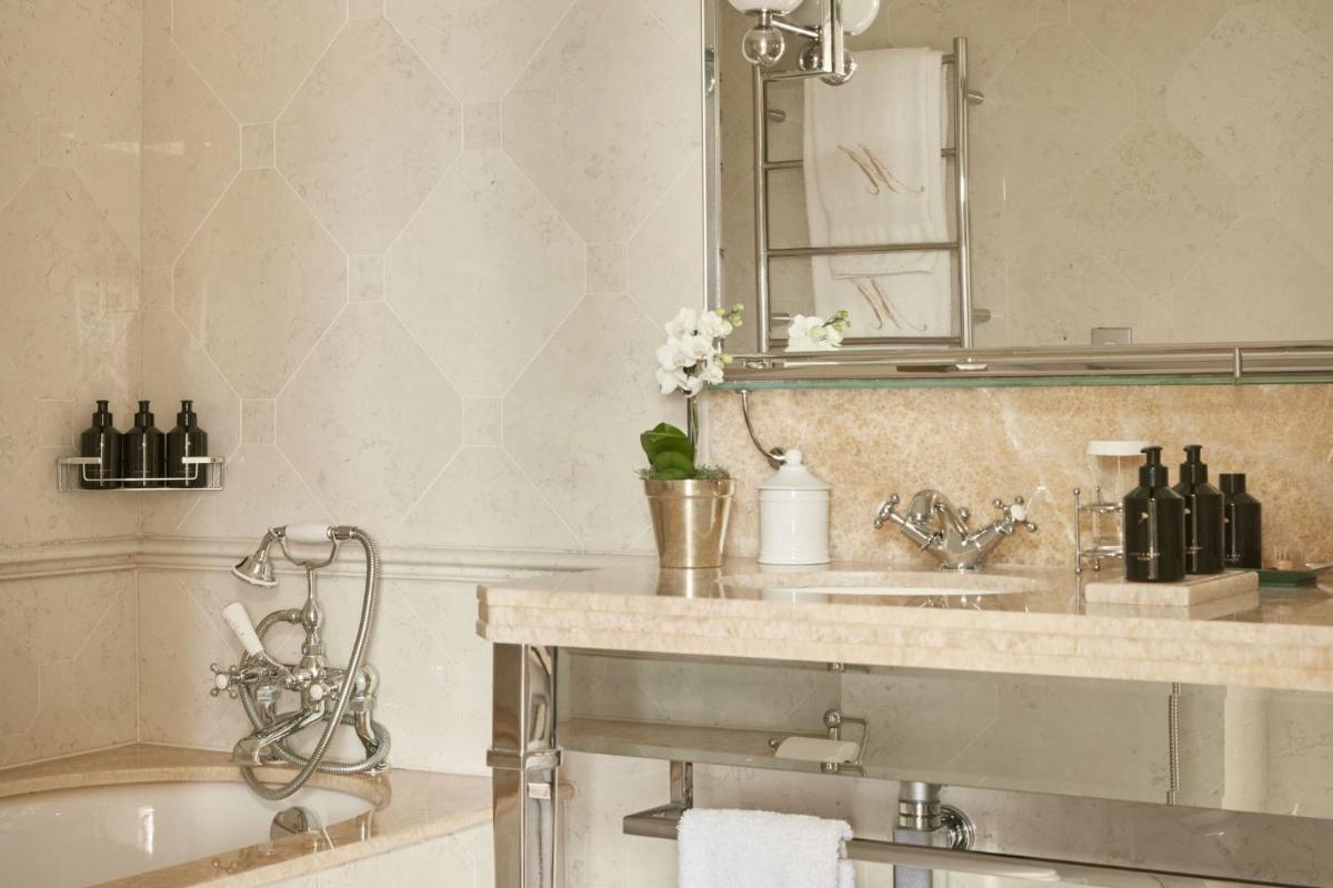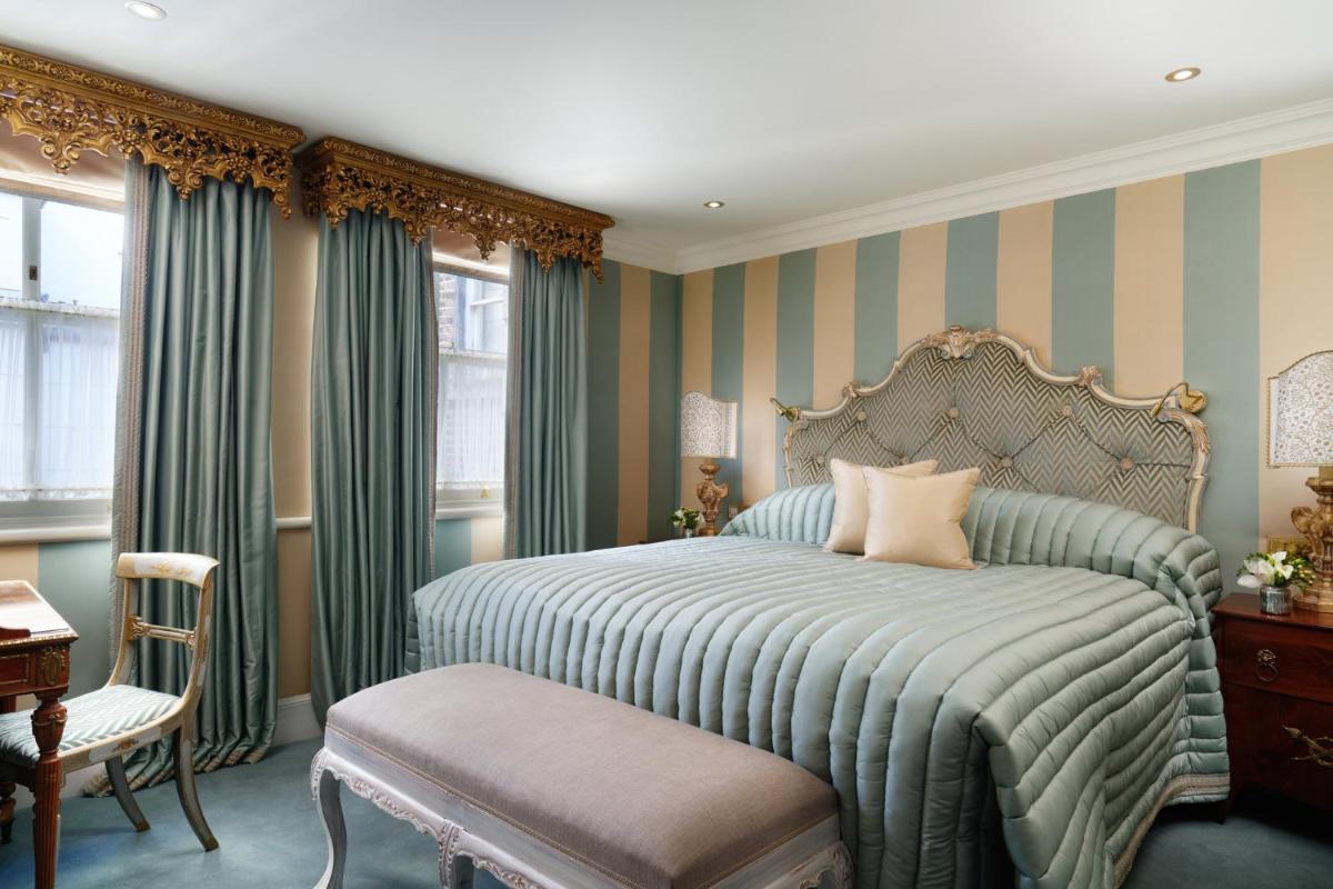 L'hotel vanta interni sontuosi, con decorazioni ricche, tappeti pregiati, caminetti accesi e una collezione d'arte unica. Le 44 camere e le 12 suite sono state progettate individualmente con uno stile lussuoso e un carattere distintivo, offrendo una vista privilegiata sui giardini o sulla tranquilla strada alberata.