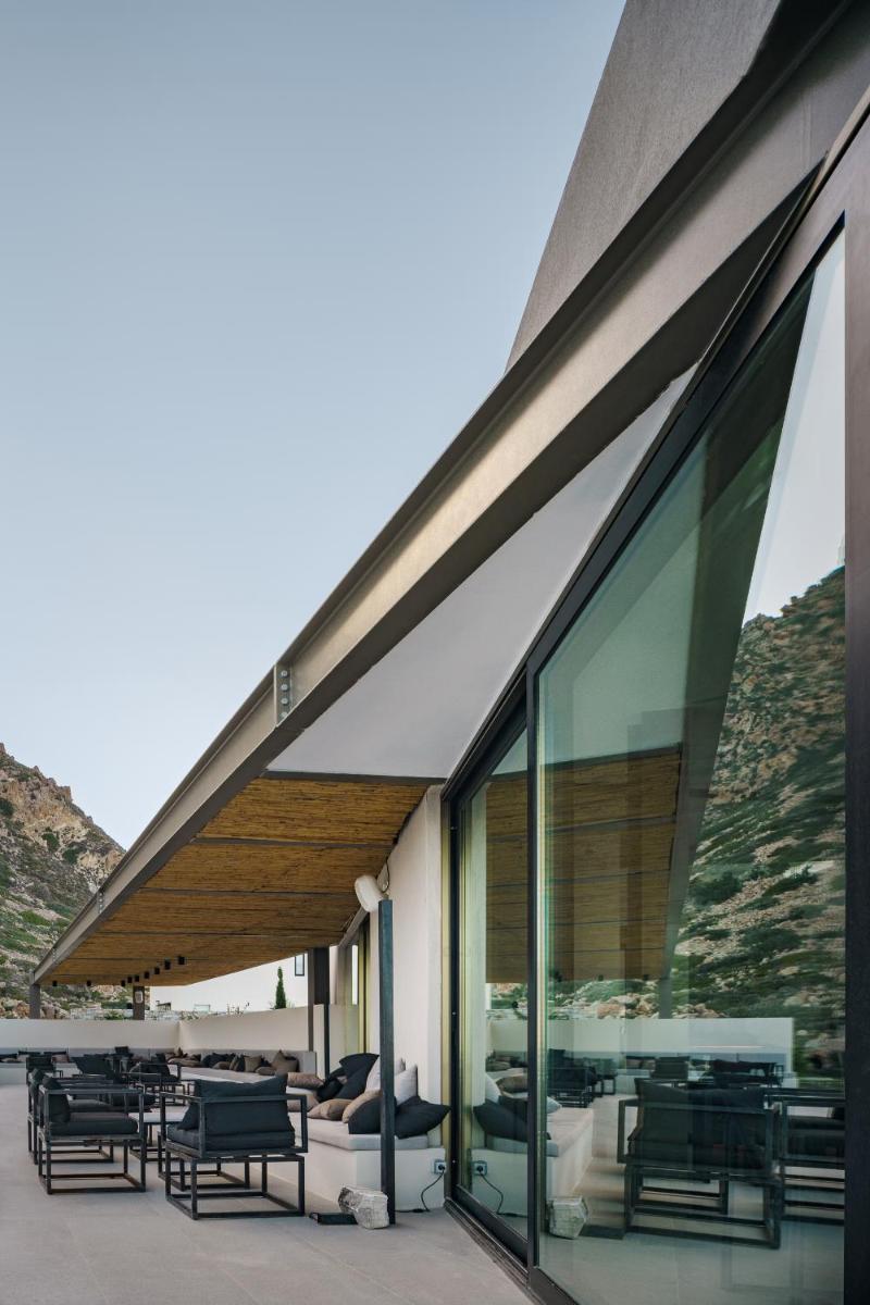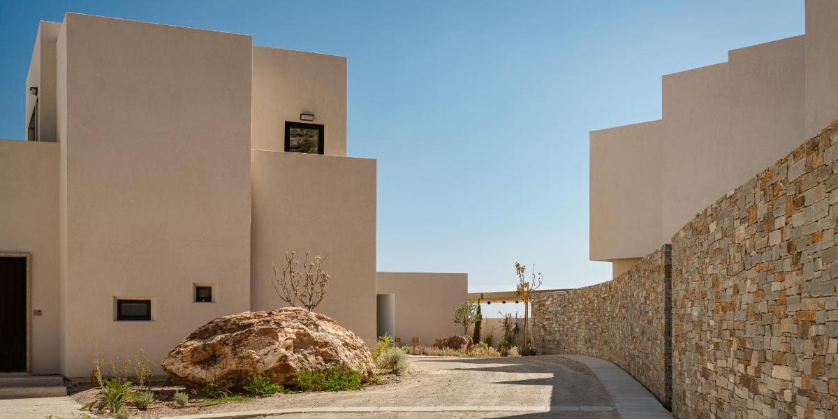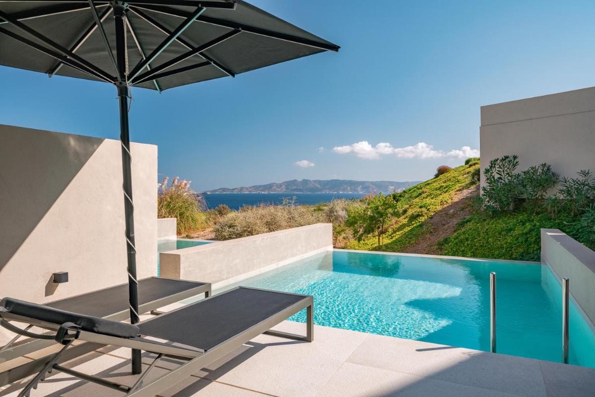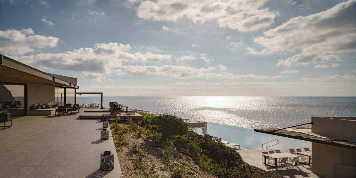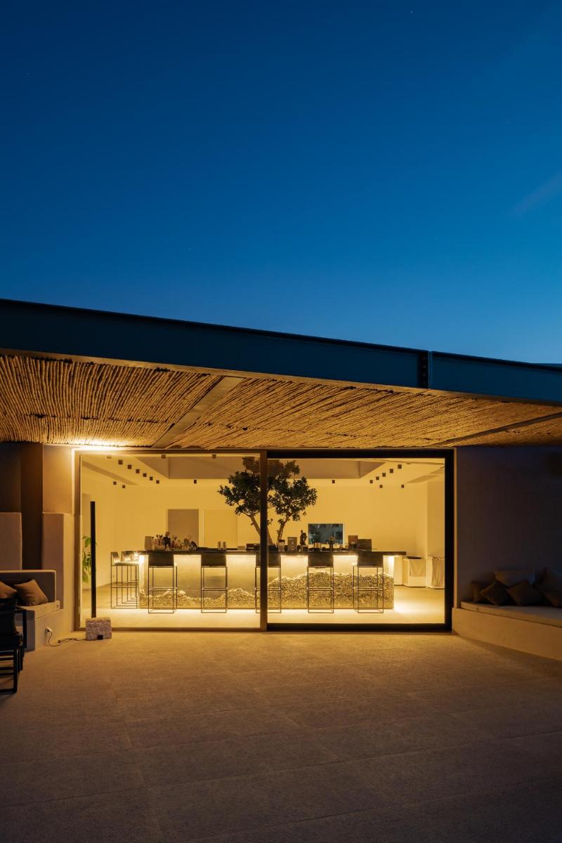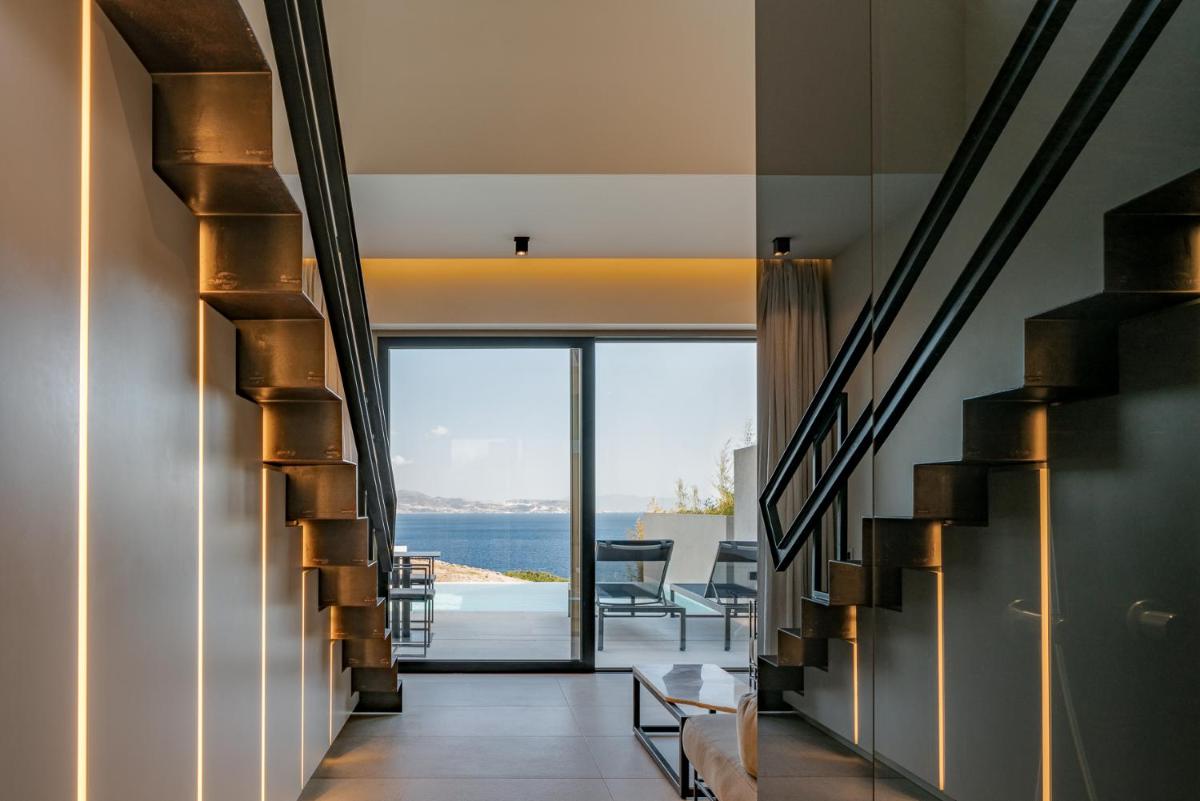 L'architettura del resort è ispirata alla roccia vulcanica di Milos, con suite e ville lussuose che si fondono con il paesaggio. Molte unità abitative vantano piscine private a sfioro e ampie terrazze, offrendo una vista ineguagliabile sul Mar Egeo. Gli interni sono minimalisti ma caldi, con materiali naturali che esaltano la bellezza dell'ambiente.