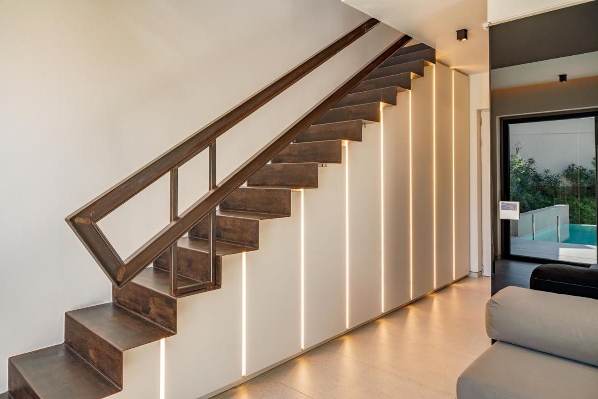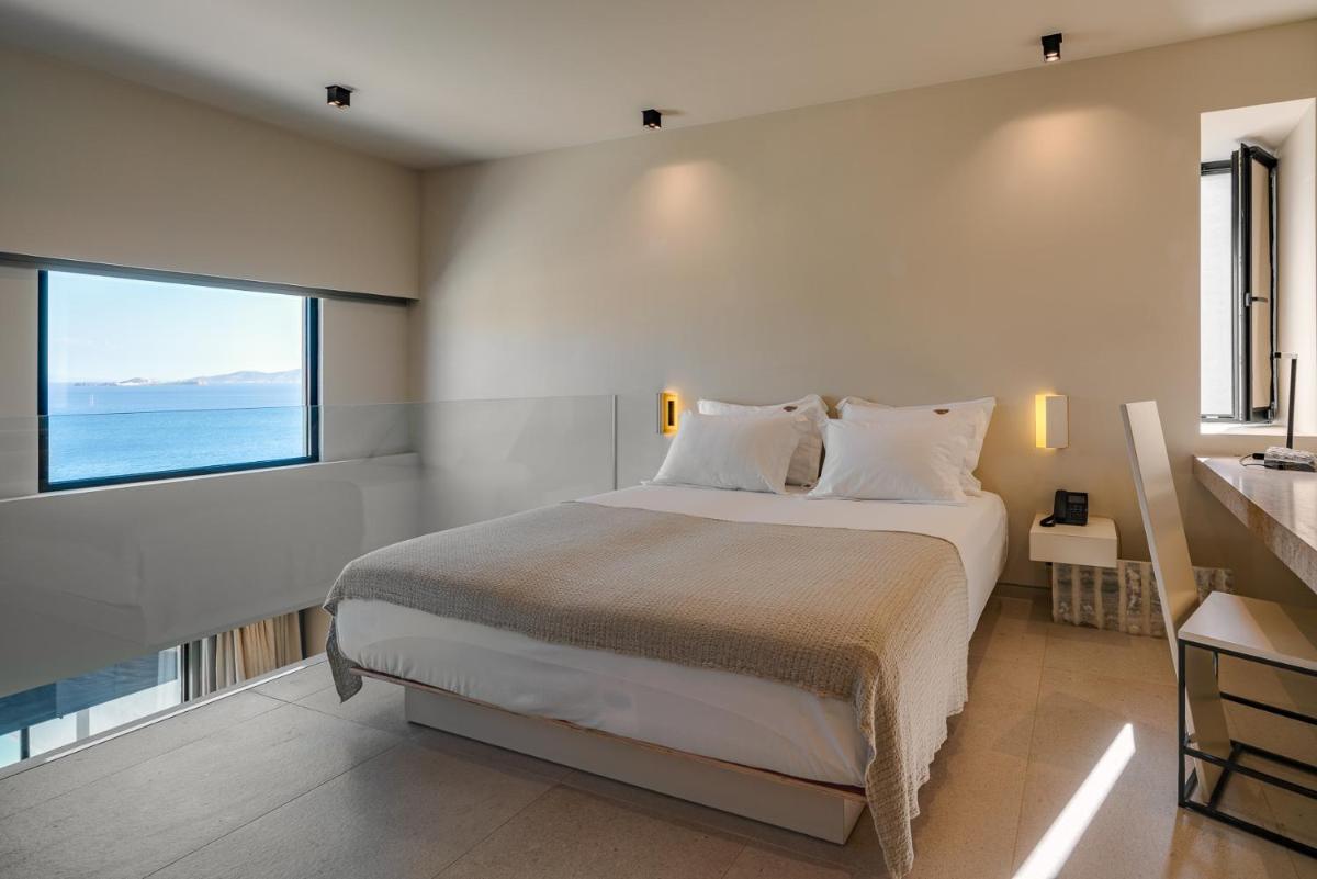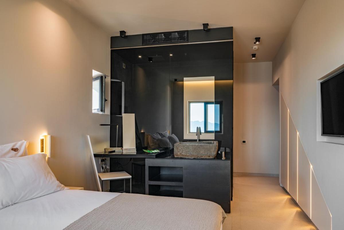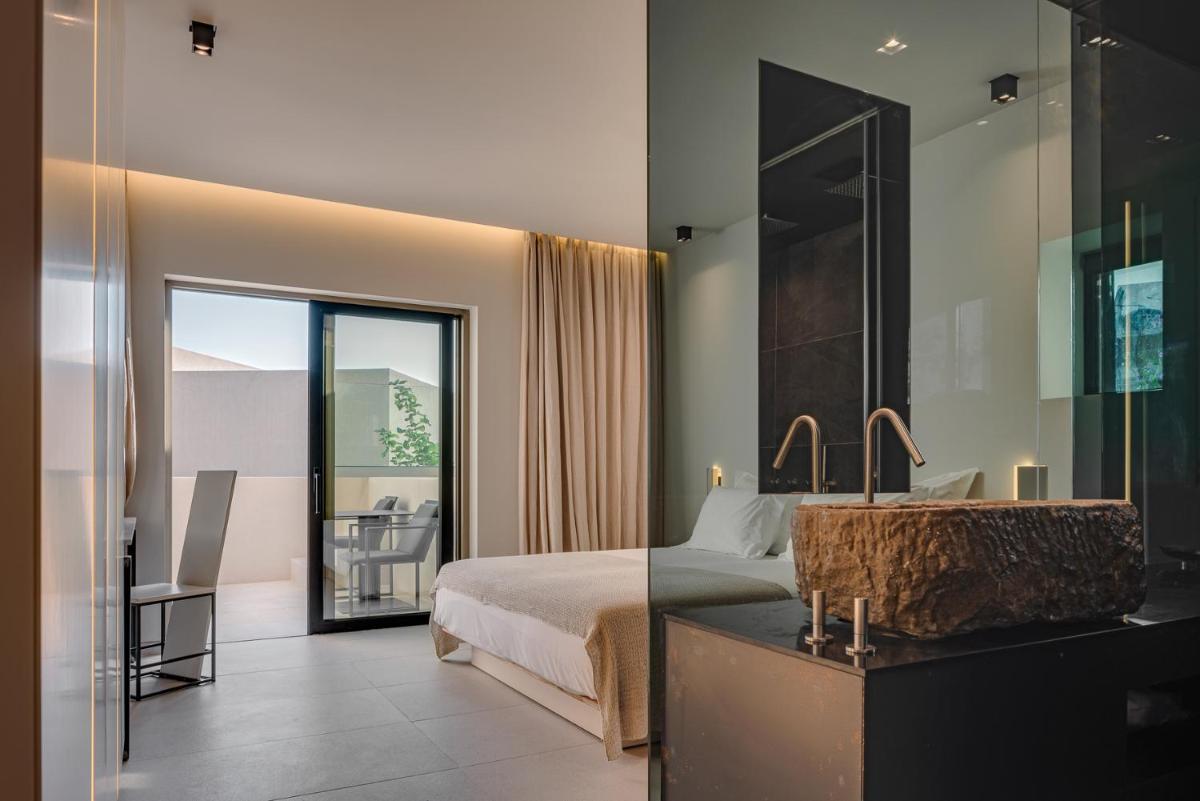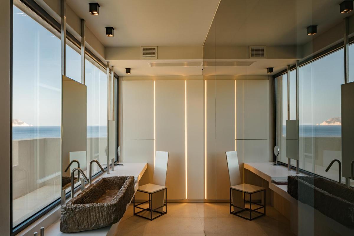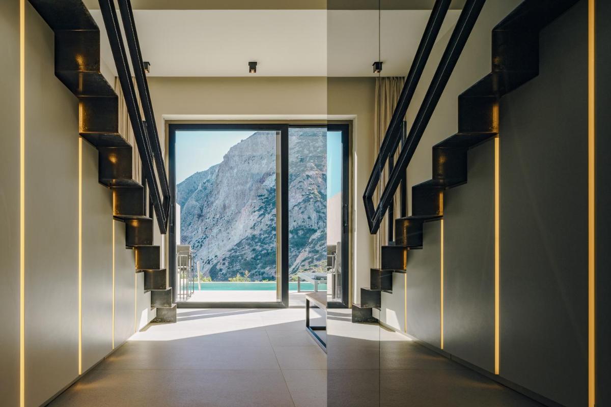 L'architettura del resort è ispirata alla roccia vulcanica di Milos, con suite e ville lussuose che si fondono con il paesaggio. Molte unità abitative vantano piscine private a sfioro e ampie terrazze, offrendo una vista ineguagliabile sul Mar Egeo. Gli interni sono minimalisti ma caldi, con materiali naturali che esaltano la bellezza dell'ambiente.