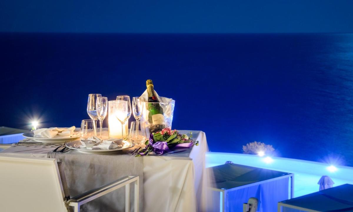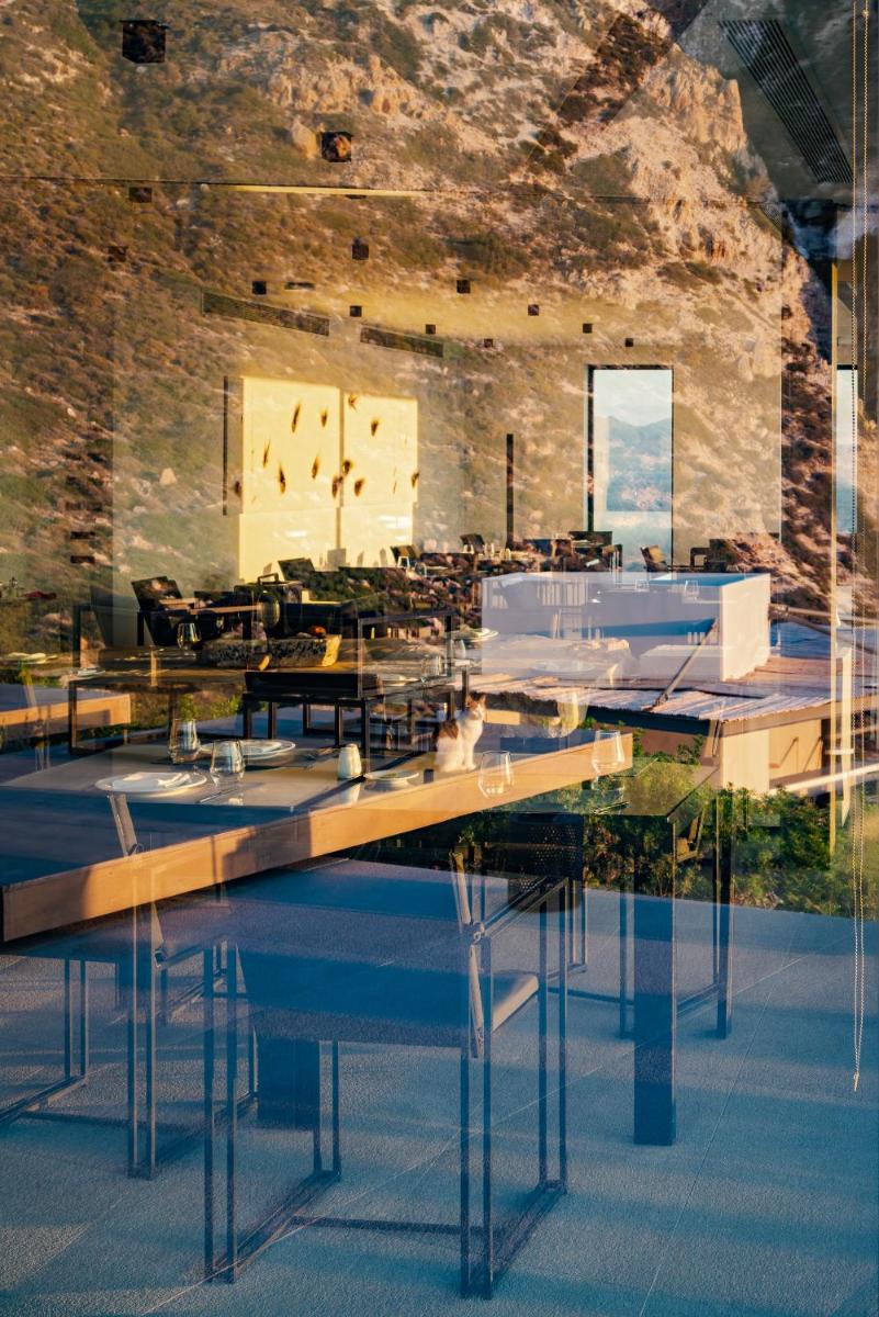 La proposta culinaria celebra i sapori del Mediterraneo e della cucina greca, con un'attenzione particolare ai prodotti freschi e locali di Milos. Il ristorante panoramico offre non solo piatti raffinati, ma anche un'atmosfera magica per cene romantiche al tramonto. L'esperienza gastronomica è curata per completare il lusso del soggiorno.