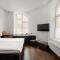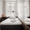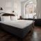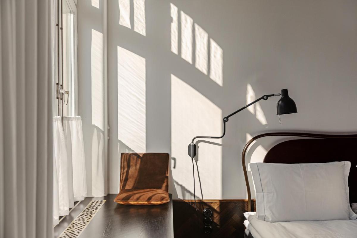 Gli interni fondono in modo creativo gli elementi originali dell'edificio, come gli alti soffitti e le ampie finestre, con l'arredamento moderno e funzionale. Le camere sono caratterizzate da un design pulito, materiali naturali come il legno e il marmo, e la luce naturale che inonda gli spazi, creando un'atmosfera di lusso scandinavo chic.