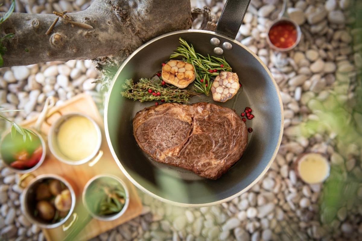Le camere e le suite sono state progettate con materiali naturali, come legno e pietra, creando un'atmosfera calda e rilassante. Per chi cerca il massimo, le suite con piscina condivisa o privata offrono angoli di quiete esclusiva. Il minibar viene rifornito quotidianamente, e i dettagli come i prodotti da bagno di alta qualità sottolineano l'attenzione costante verso il benessere dell'ospite.