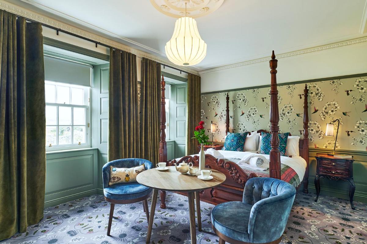 Le poche e lussuose camere sono state restaurate con cura, preservando il fascino originale della dimora pur introducendo arredi e servizi contemporanei. Ogni suite vanta finiture di pregio, bagni lussuosi e un design che celebra l'eredità storica scozzese. Il soggiorno qui è un'immersione nel lusso discreto e nella tranquillità assoluta, lontano dal clamore del turismo di massa.