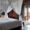 Gli alloggi sono costituiti da bungalow 'rondavel' individuali, costruiti con materiali locali e progettati per integrarsi perfettamente con l'ambiente. Sono lussuosamente arredati, offrendo un rifugio tranquillo con terrazze private affacciate sulla boscaglia o sui letti asciutti dei fiumi. Il design è tradizionale e caldo, garantendo un'atmosfera di pace e isolamento.