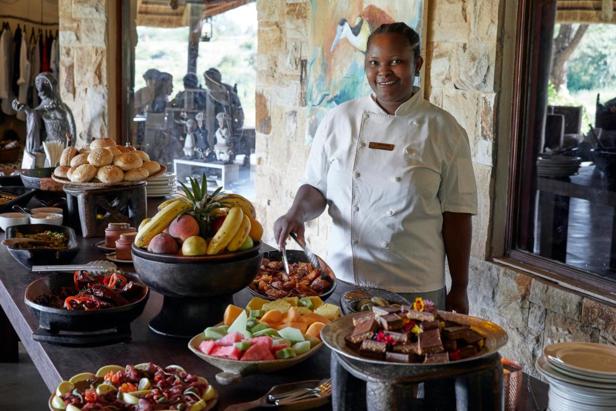 Il lodge espone una notevole collezione d'arte africana, aggiungendo un elemento culturale unico all'esperienza. La cucina è un'ottima fusione di sapori locali e piatti internazionali, con pasti spesso serviti in luoghi spettacolari come il Boma illuminato, creando un'esperienza gastronomica indimenticabile sotto il cielo stellato africano.