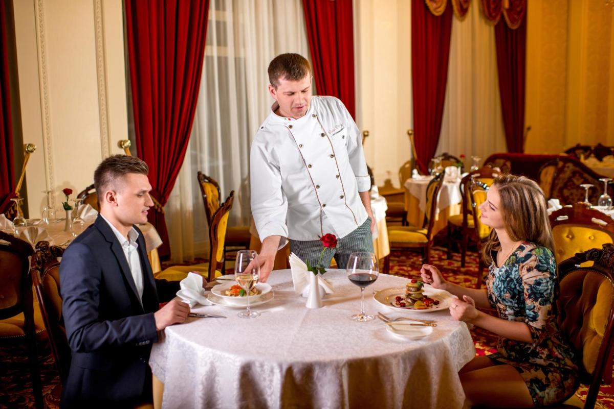 Il ristorante dell'hotel serve una prima colazione a buffet e piatti della cucina mediterranea e ucraina, mentre lo spazioso bar della hall offre musica dal vivo e cocktail rilassanti.