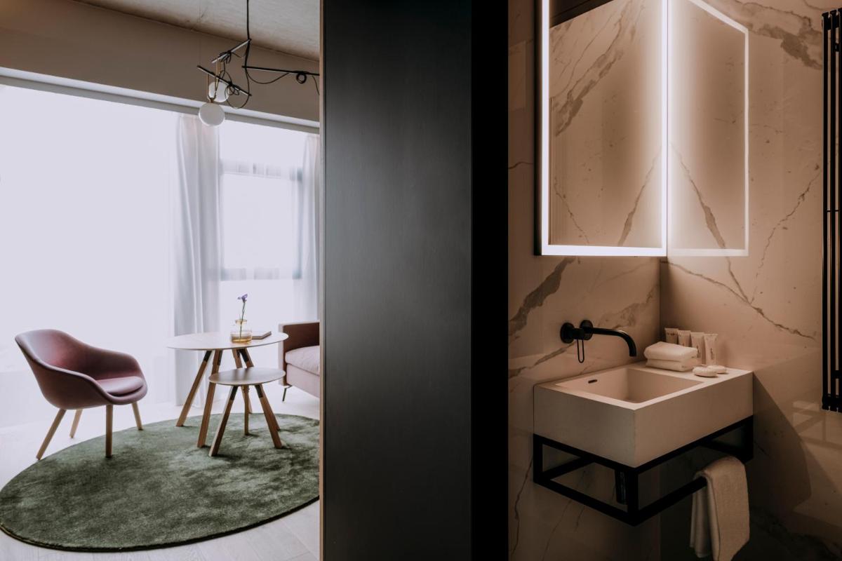 Situata nell'ala storica dell'hotel in stile Art Déco, questa spaziosa suite ben arredata è dotata di una zona giorno con divano letto estraibile e un lussuoso bagno con vasca. Camera matrimoniale con tappetino da yoga, set da tè giapponese, macchina da caffè Nespresso®, lussuosi cosmetici Natura Bisse, doccia con getto a pioggia o vasca, TV LED da 65 pollici e altoparlante bluetooth Harman-Kardon.