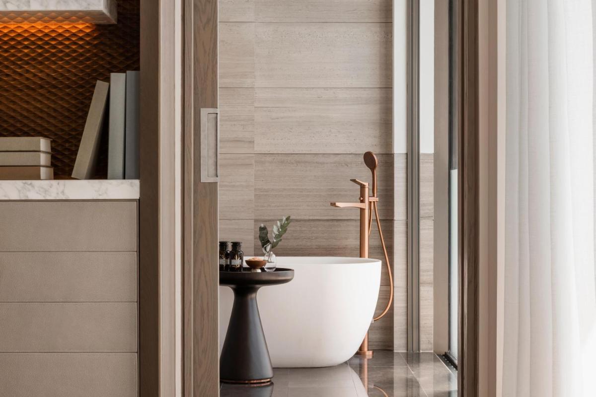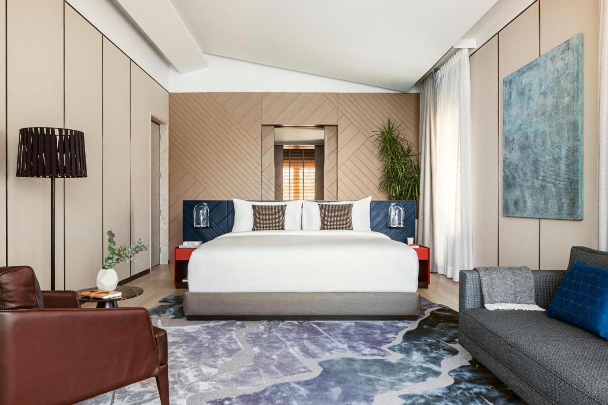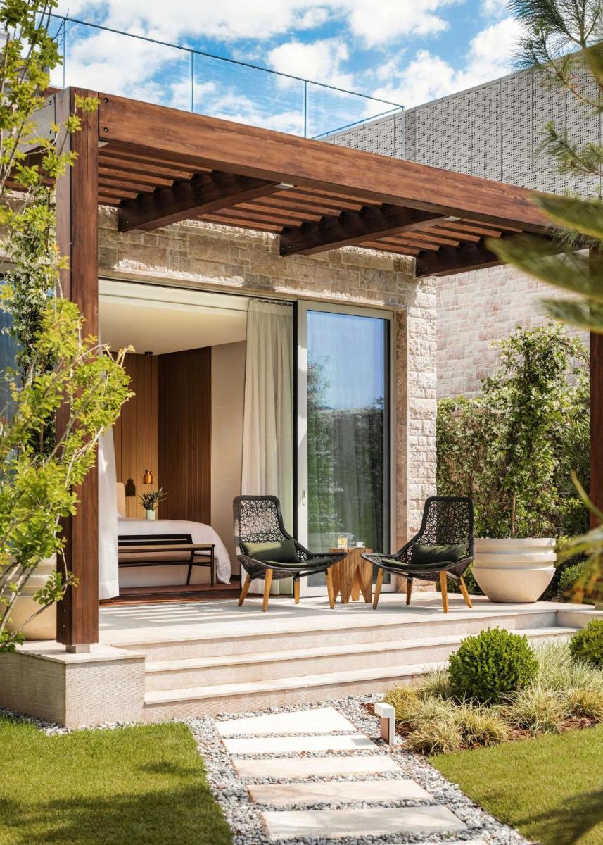 Le camere, le suite e le ville private sono state progettate per massimizzare la vista sulla baia e sui giardini lussureggianti. Gli interni riflettono l'eleganza locale con un tocco contemporaneo. Molti alloggi includono camini aperti e piscine private, garantendo la massima privacy e un comfort ineguagliabile in un contesto di design ricercato.