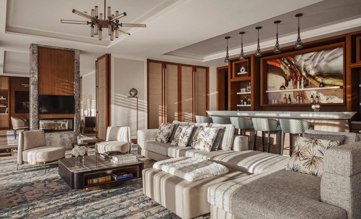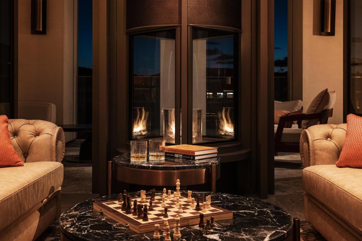 Featuring 123 m2, this suite comes with a foyer area, spacious terrace with outdoor dining area, a living room, indoor dining area and pantry. Guests can relax at the 2 fireplaces or have dinner with a view. The host service is at your disposal as well as a private waiter service for the fine dining experience.