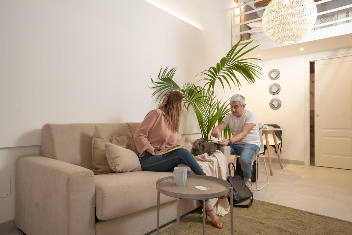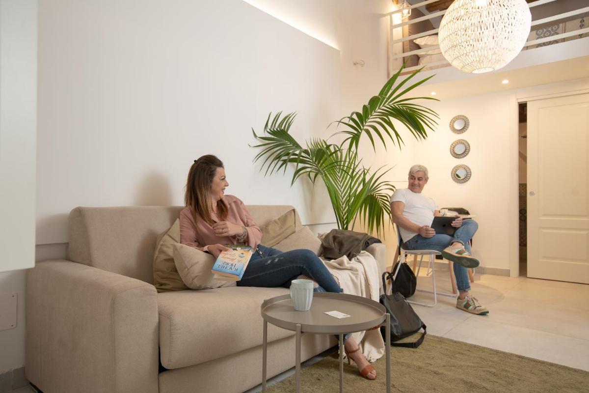 Gli interni scelgono toni naturali e linee pulite: cucine attrezzate, living accoglienti, letti generosi. Alcune soluzioni si aprono su balconi e patii affacciati sui vicoli, per respirare l’isola sin dal mattino.