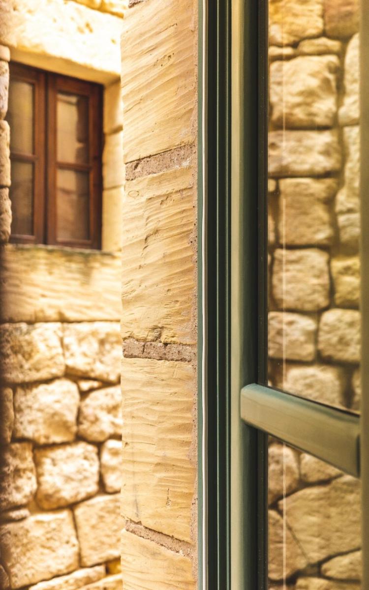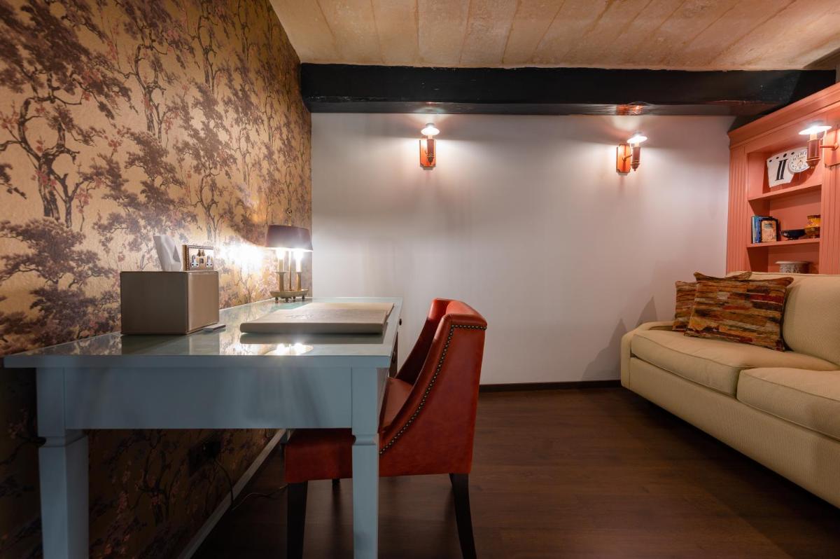 Il nome deriva dalla tipica finestra bifora che adorna la facciata, richiamando il patrimonio architettonico. Gli interni mescolano sapientemente elementi storici, come le travi a vista e la pietra calcarea, con arredi contemporanei di alta qualità. Ogni camera è un'opera d'arte, garantendo un'atmosfera di lusso discreto e autentico.