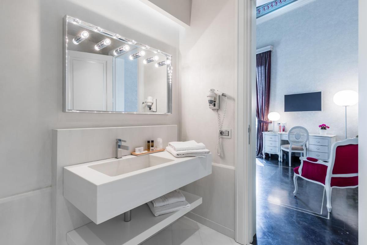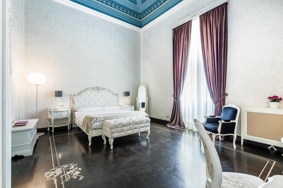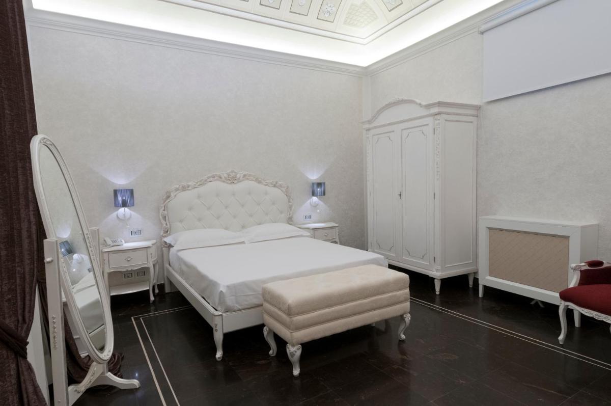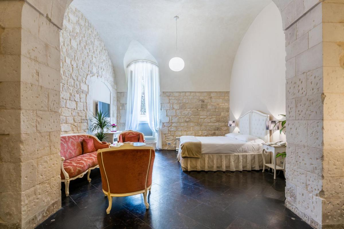 Gli interni sono un inno al Barocco siciliano, con volte affrescate, ampi saloni e balconi in ferro battuto che si affacciano sulla maestosità delle vie di Scicli. Ogni suite o camera conserva intatto il fascino storico, combinandolo sapientemente con servizi moderni e di alto livello. I dettagli architettonici, come le grandi porte in legno e le scalinate monumentali, raccontano secoli di storia e cultura.