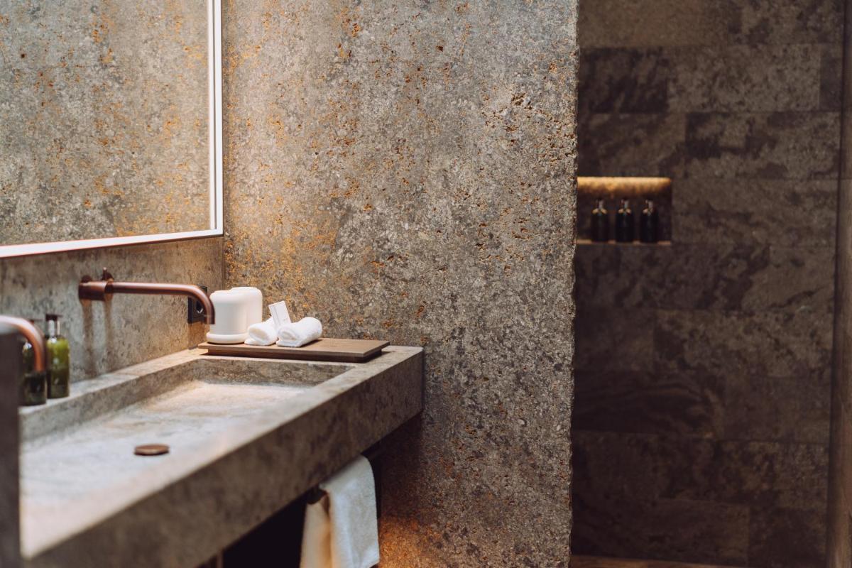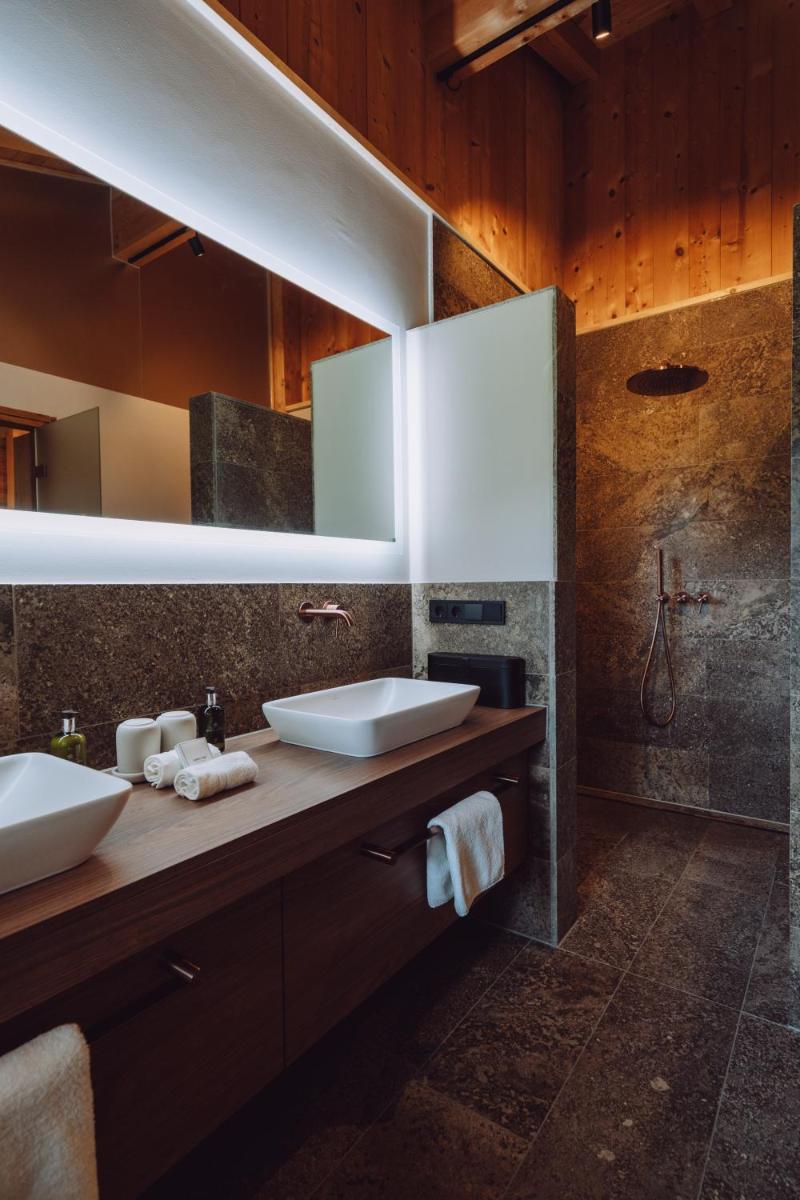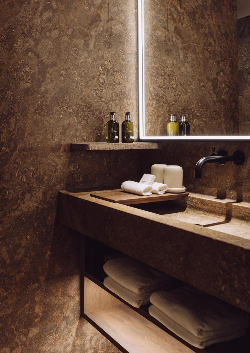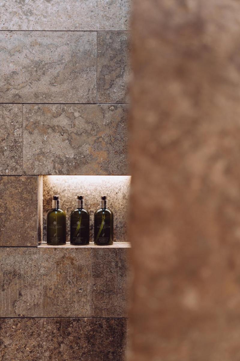 L'hotel si presenta con un'architettura che evoca le tradizionali fattorie bavaresi (Höfe), sapientemente rinnovata con un design interno sofisticato e contemporaneo. Le camere e le suite sono caratterizzate da materiali naturali di alta qualità, come legno di quercia e tessuti pregiati, offrendo un'atmosfera di caldo lusso e intimità. Molte godono di una vista incantevole sul parco o sulle Alpi del Mangfall.