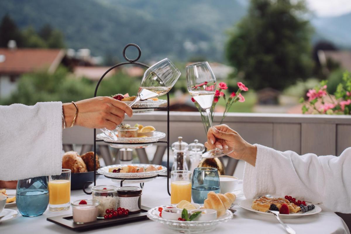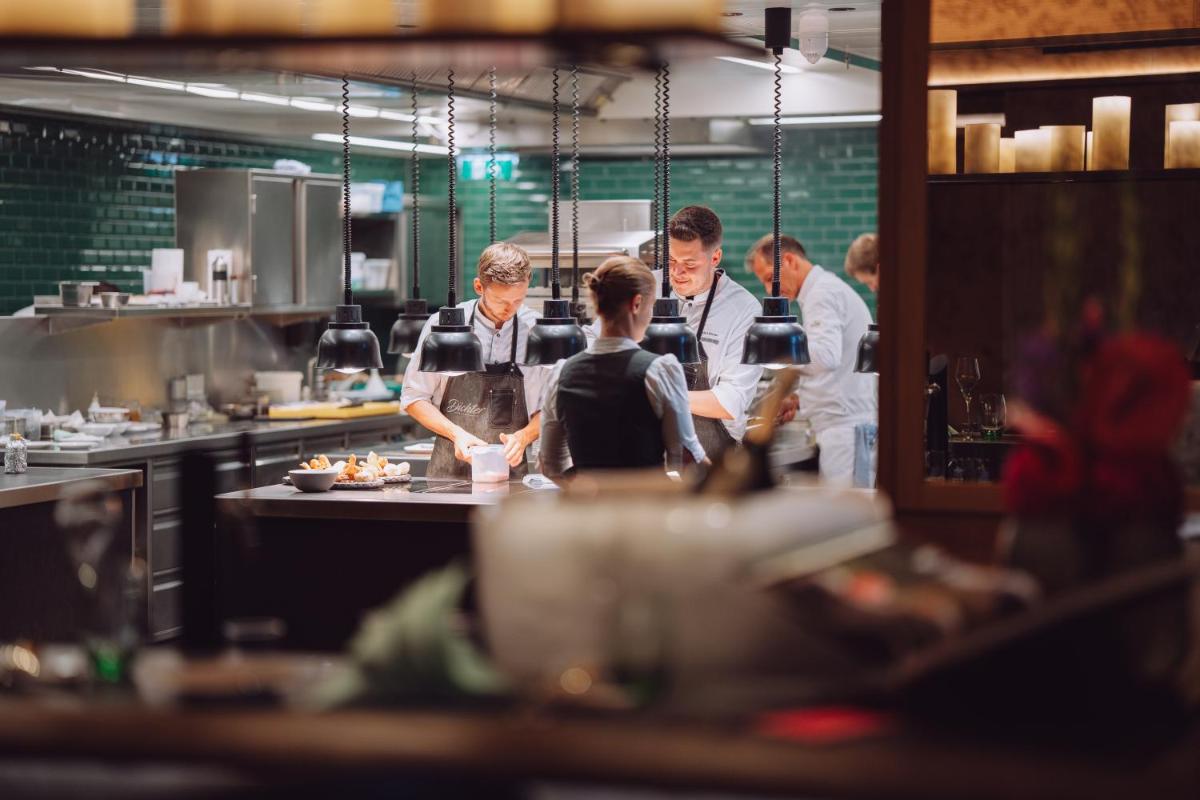 Il resort è una destinazione culinaria di primo piano, ospitando ristoranti che celebrano l'alta cucina. Il ristorante stellato offre creazioni gourmet basate sulla cucina regionale bavarese e internazionale, preparate con ingredienti freschi e di stagione. L'esperienza gastronomica è accompagnata da una cantina eccezionale, rendendo ogni pasto un momento indimenticabile di piacere sensoriale.
