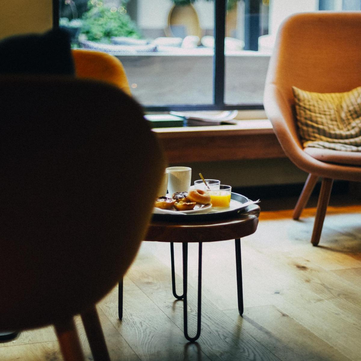 L'hotel si distingue per il suo contrasto affascinante: l'edificio storico conserva travi a vista, pietra arenaria e archi gotici, mentre l'ala nuova offre un design minimalista. Il patio centrale funge da cuore tranquillo dell'hotel, unendo i due stili e offrendo un'oasi di pace.