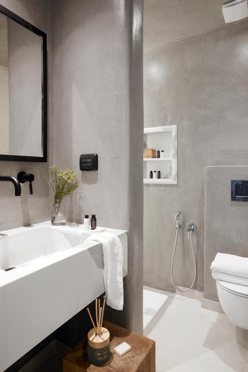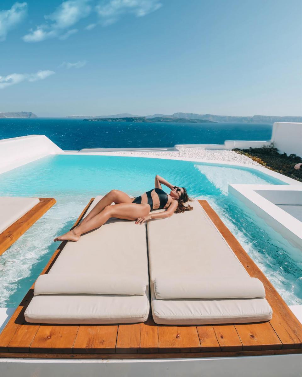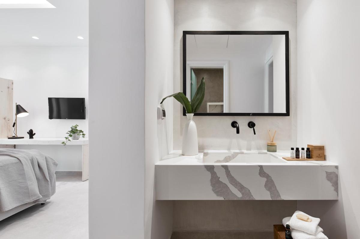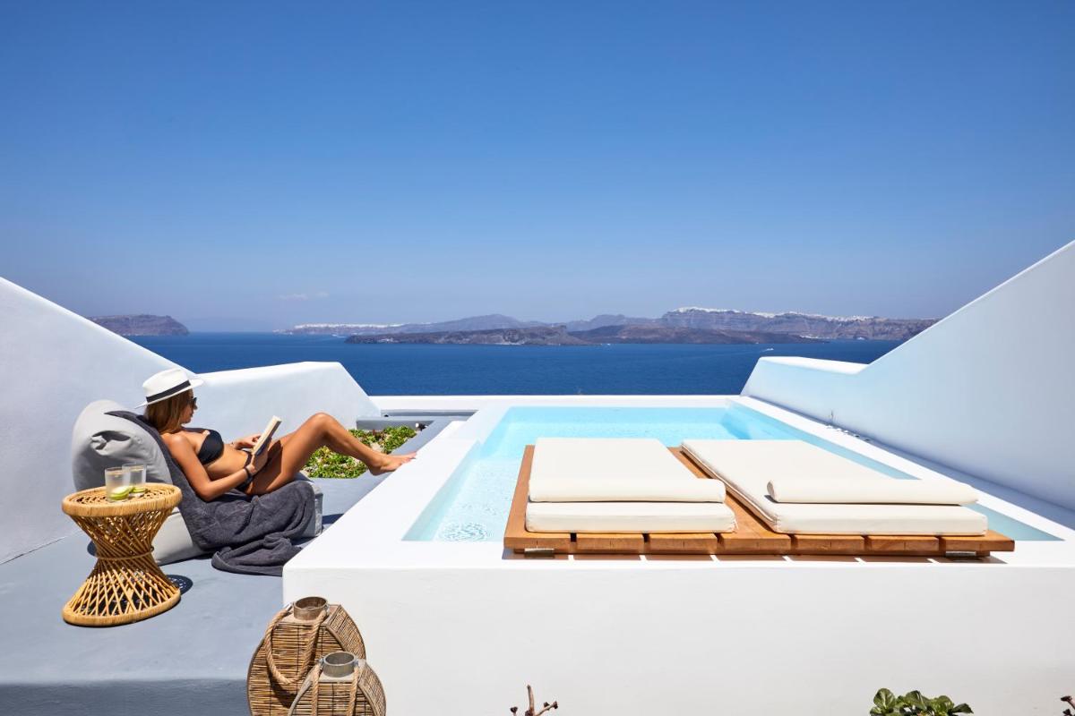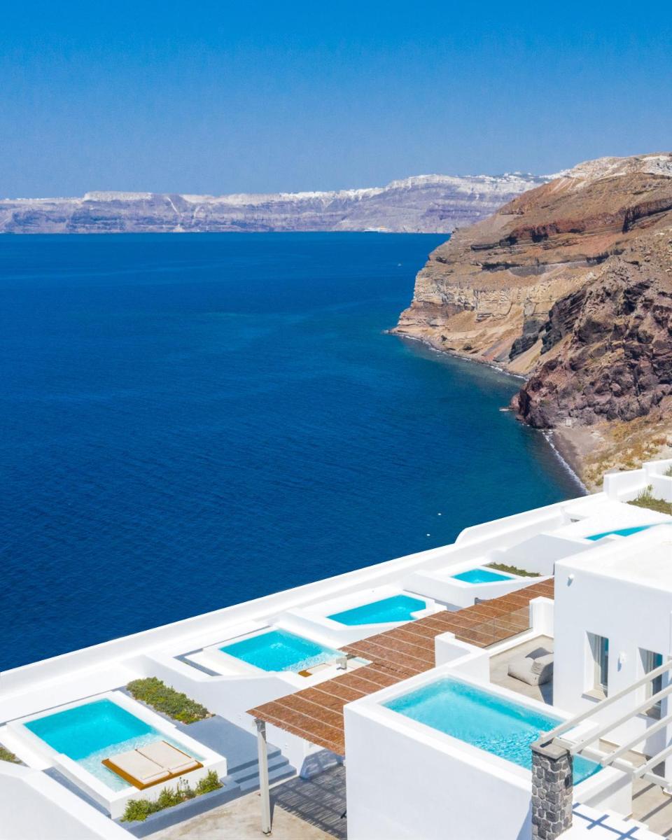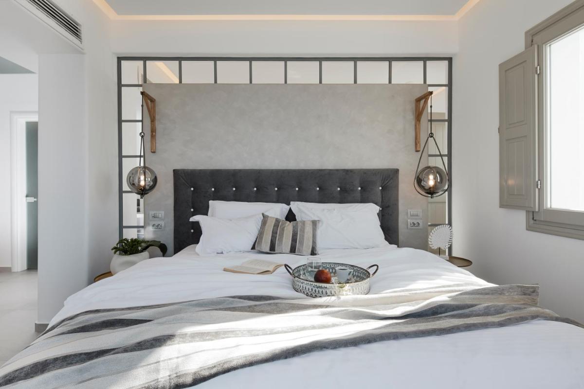 Il design interno ed esterno riflette l'estetica pura e minimalista di Santorini, caratterizzata da linee pulite, pareti bianche e tocchi di colore neutro. L'uso sapiente di elementi naturali e texture contribuisce a creare un ambiente di assoluta serenità, dove ogni dettaglio è curato per riflettere l'eleganza discreta e l'armonia con il paesaggio vulcanico circostante.