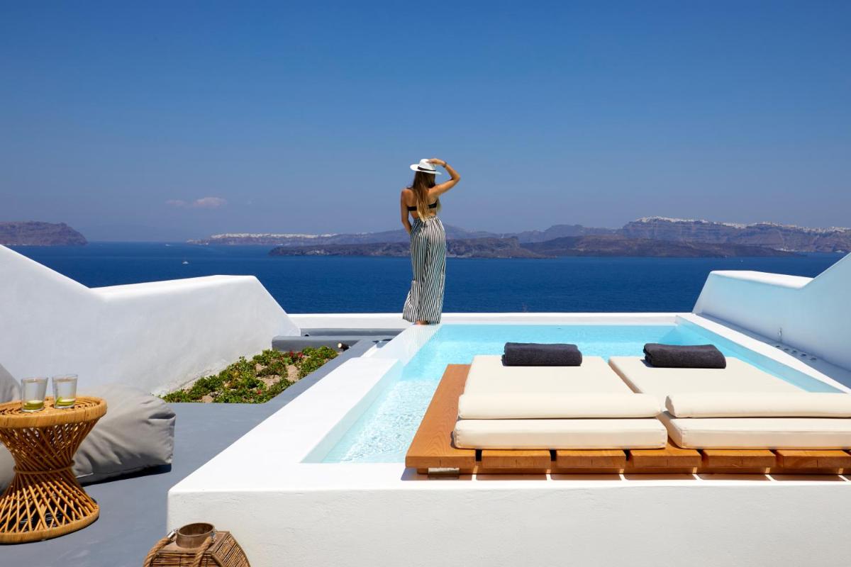 Phos The Boutique è un'esperienza di lusso esclusiva a Santorini, situata strategicamente a Imerovigli per offrire una vista frontale e ininterrotta sulla celebre Caldera e sul Mar Egeo. Questo hotel boutique si distingue per la sua architettura cicladica moderna, combinata con servizi impeccabili e un'atmosfera di totale tranquillità, rendendolo il rifugio ideale per coppie e viaggiatori esigenti.