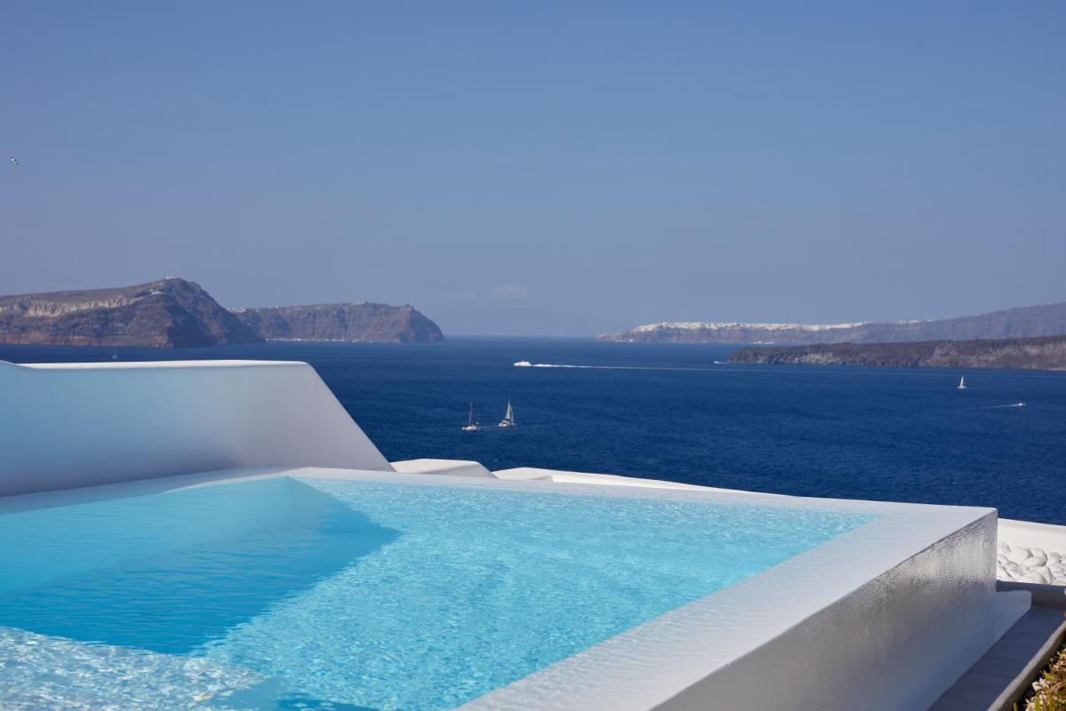 La cucina dell'hotel celebra i sapori autentici delle Cicladi e del Mediterraneo. Gli ospiti possono gustare una ricca colazione à la carte servita ogni mattina, con particolare attenzione ai prodotti freschi e locali di Santorini. Per la cena, il ristorante offre un menu raffinato, con la possibilità di cene romantiche private sotto le stelle, completando l'esperienza di lusso sensoriale.