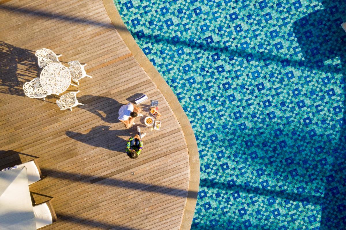 The Suites are all about space, serenity and luxury, framed by exotic views of Bali’s verdant rice terraces and the swimming pool. Each expansive suite includes a large living room, a dining area, and an outdoor terrace with daybed, offering a spectacular stay just steps from the bustling streets of Ubud, or a stunning Bali honeymoon retreat