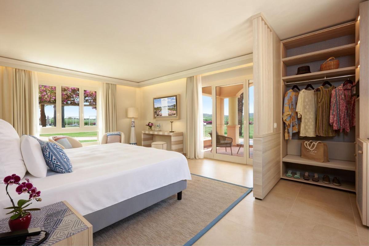 Le 238 camere e suite riflettono l'essenza dell'ospitalità sarda, con un design elegante che unisce modernità e artigianato locale. Dalle confortevoli Standard Room alle lussuose Prestige Suite Lato Laguna, ogni alloggio è un rifugio di quiete e stile. Tutte le sistemazioni sono dotate di climatizzazione, minibar, Smart TV 50'', macchina Nespresso e una terrazza o veranda attrezzata da cui godere della vista sui giardini o sulla baia. Il Wi-Fi gratuito è disponibile in tutto il resort.