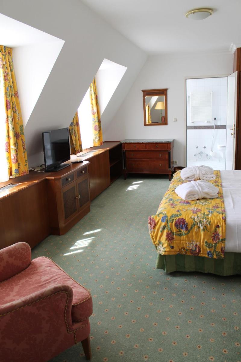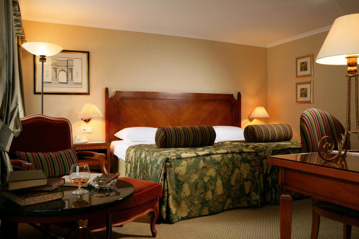 Gli interni dell'hotel mantengono l'atmosfera regale del palazzo, con soffitti alti e decorazioni classiche. Le camere e le suite sono ampie e arredate con gusto, offrendo un mix di charme storico e dotazioni moderne. Molte godono di una vista suggestiva sul parco o sui viali della Ringstraße.