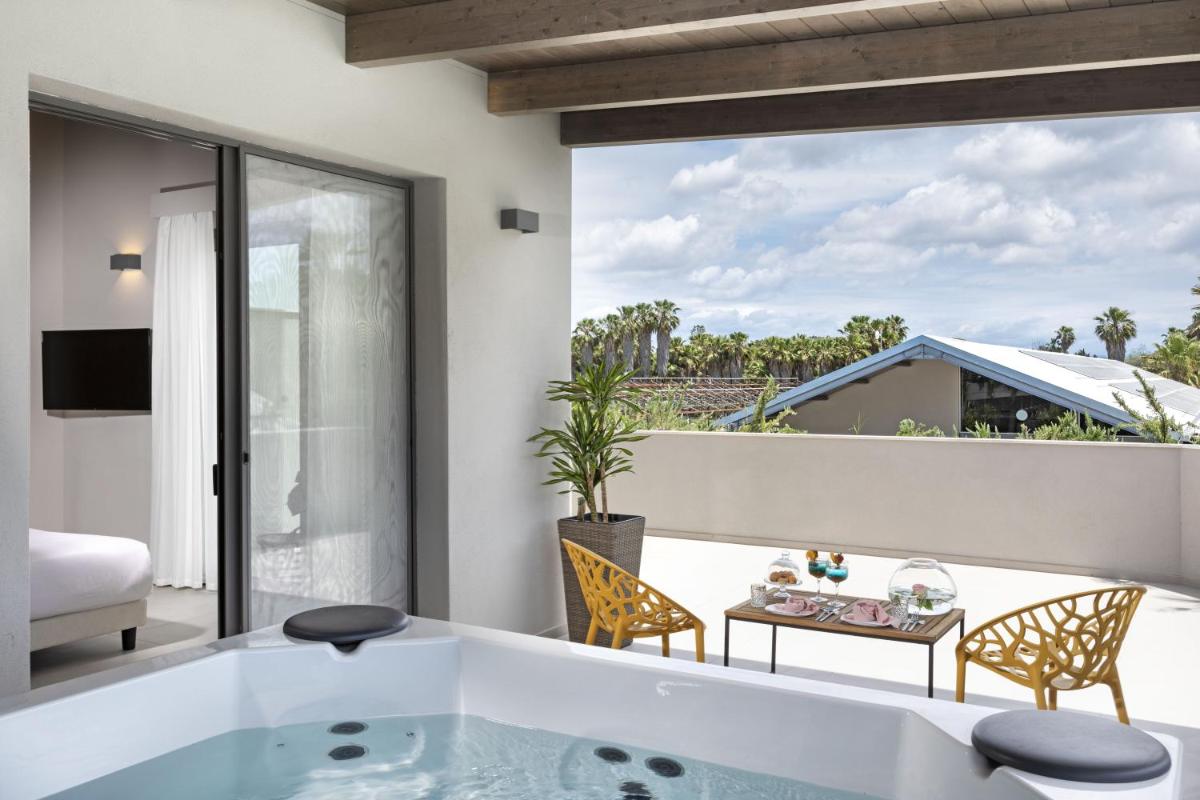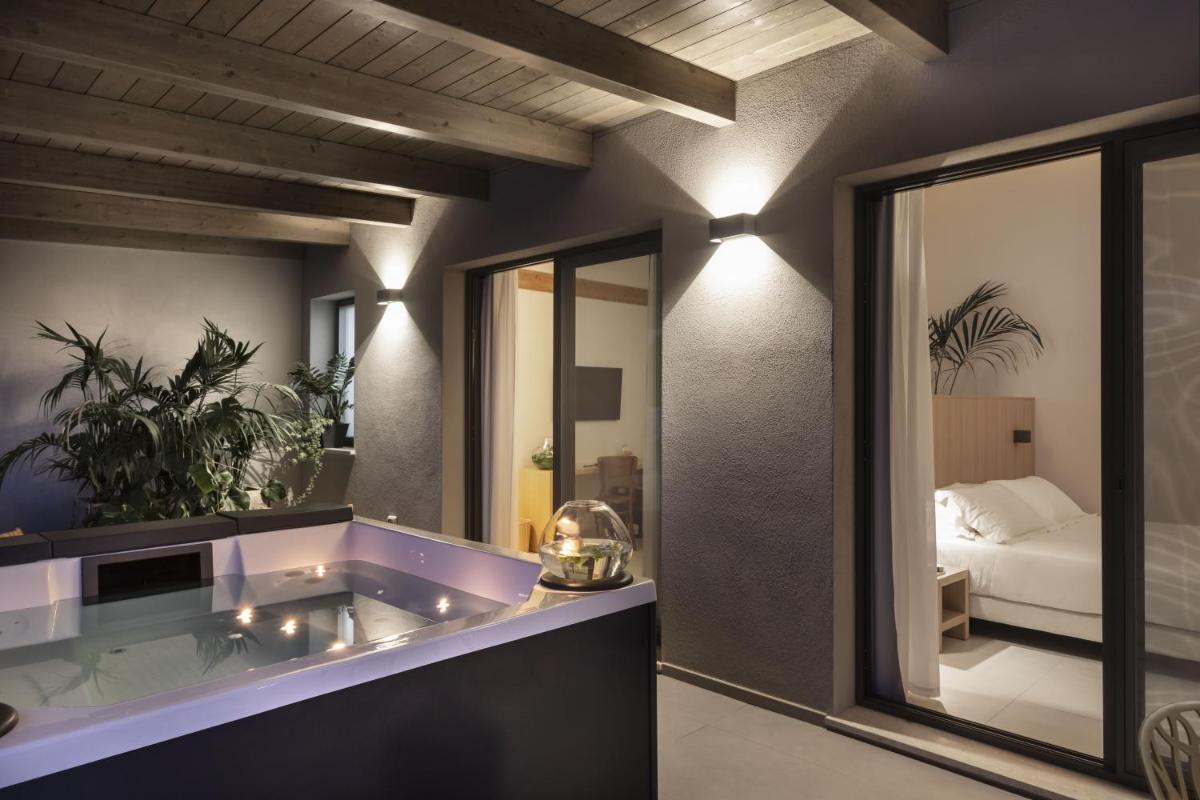 L'hotel dispone di sole 8 raffinate Suite, oasi di comfort e stile. Le camere sono caratterizzate da un design moderno e autentico e offrono vista giardino. Tutte le suite includono aria condizionata, TV a schermo piatto, cassaforte, frigorifero, bollitore e Wi-Fi gratuito. Le tipologie di alloggio variano, con alcune Suite che offrono una vasca idromassaggio privata interna o sulla terrazza.