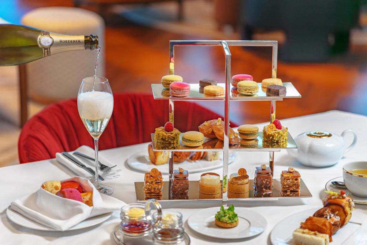 L'hotel è un polo gastronomico che ospita diversi ristoranti pluripremiati. Dal raffinato cibo cinese di Dai Pai Dong alla cucina mediterranea di Glo, le opzioni soddisfano ogni palato. Imperdibile è il bar panoramico, che offre cocktail d'autore e una vista notturna spettacolare sul cuore della capitale emiratina.