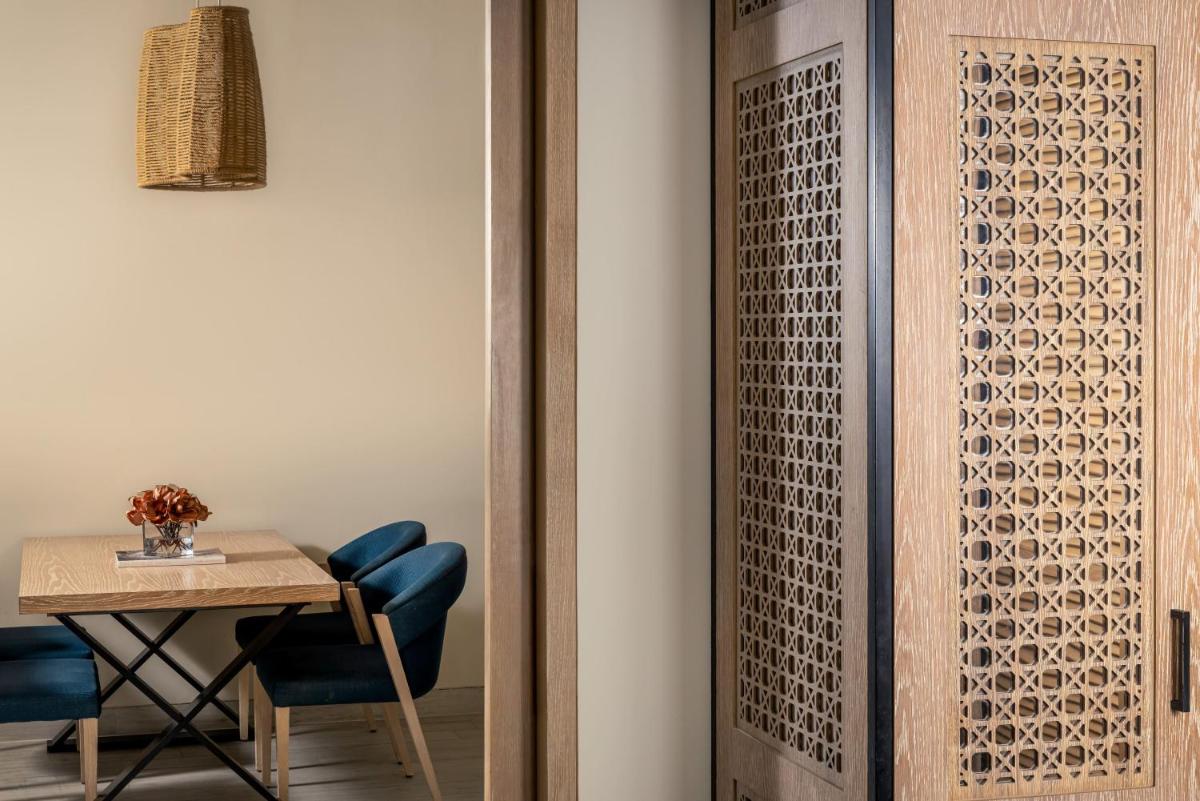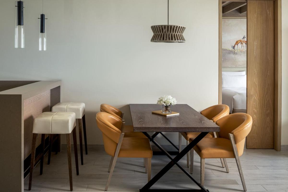 Il resort è caratterizzato da un design contemporaneo che si fonde armoniosamente con l'ambiente naturale circostante. Le camere, le suite e le ville offrono un comfort superiore e molteplici servizi, con balconi privati o terrazze che offrono viste spettacolari sul Golfo.
